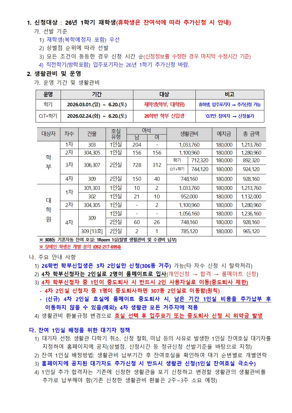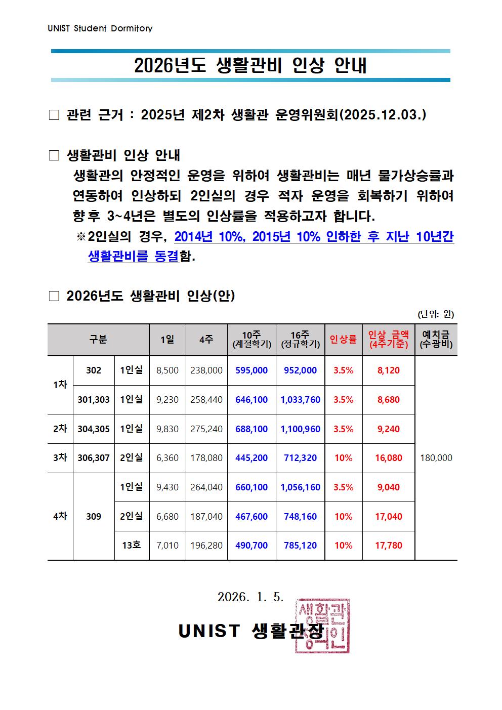 | 공지 | 2026학년도 생활관비 인상 안내(Notice for Dormitory Fee I.. | 2026-01-05 | 1342 |