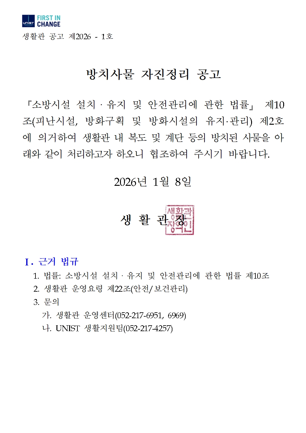 | 공지 | [No.2026-1] 방치사물 자진정리 공고(Notice to Remove and .. | 2026-01-08 | 154 |