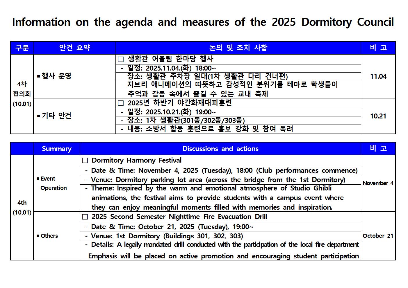 제4차 생활관 생활협의회 회의록/Information on the agenda and measures of the 2025 Dormitory Council