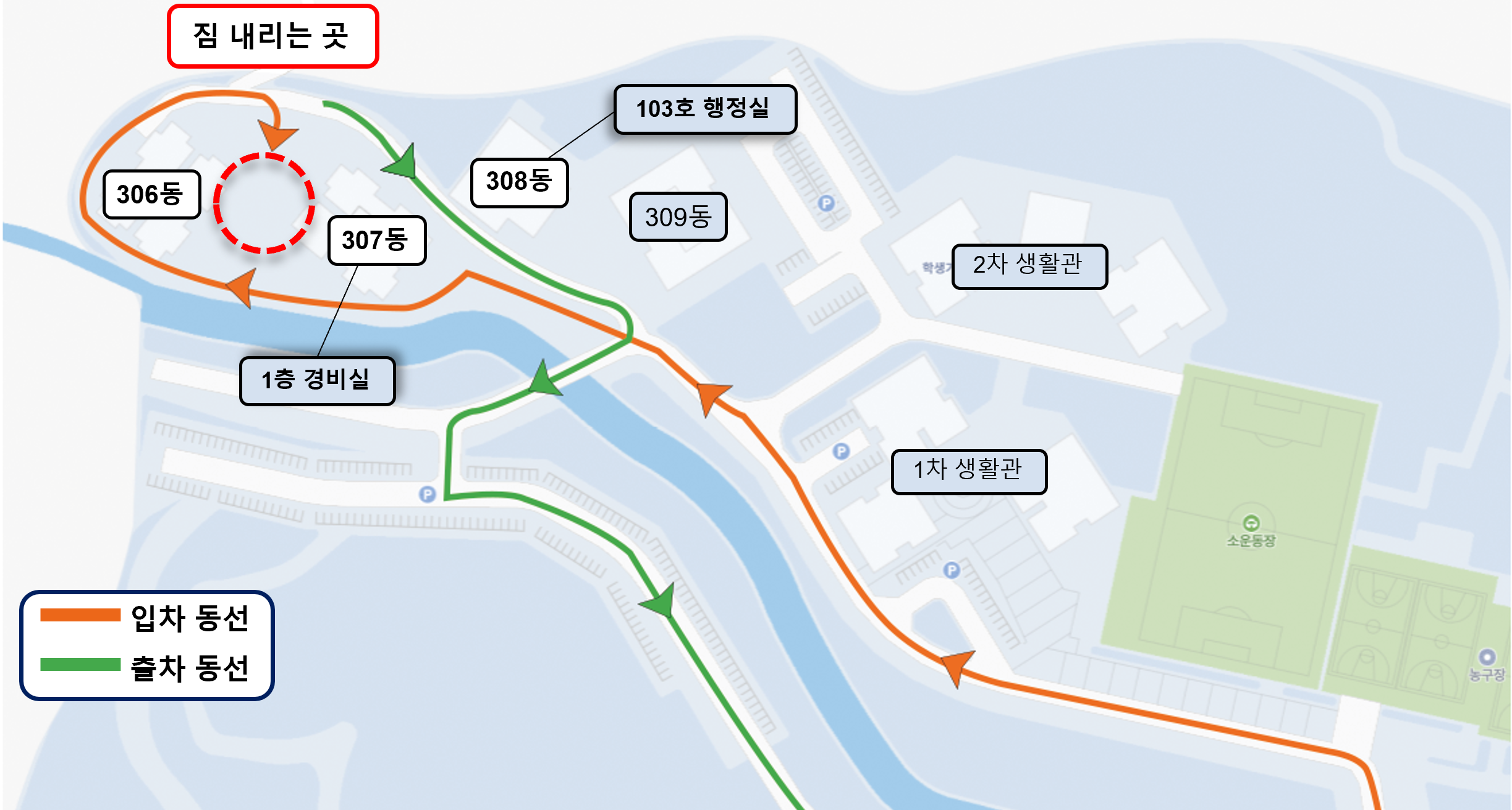 ㅇ 교통 혼잡이 예상되오니, 물품(짐) 하차 후 신속히 이동 요망