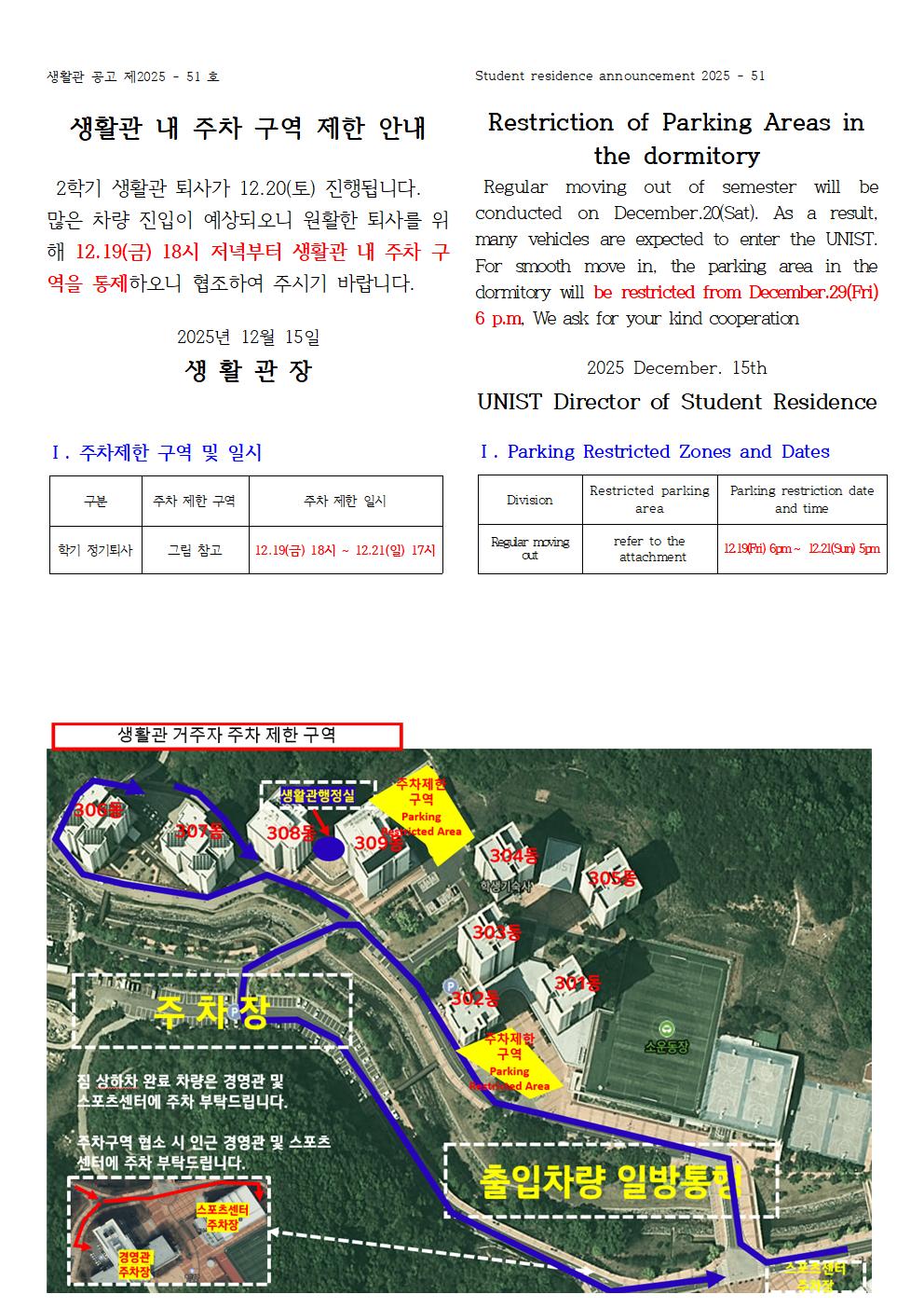| 공지 | [No.2025-51] 생활관 내 주차 구역 제한 안내(Restriction f.. | 2025-12-15 | 44 |