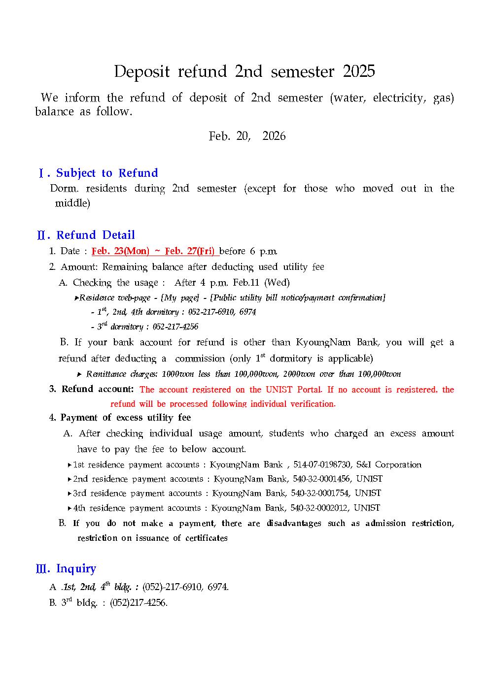 | 공지 | (수정) 2025년 2학기 예치금 환불 안내 (Deposit refund 2nd.. | 2026-02-11 | 595 |