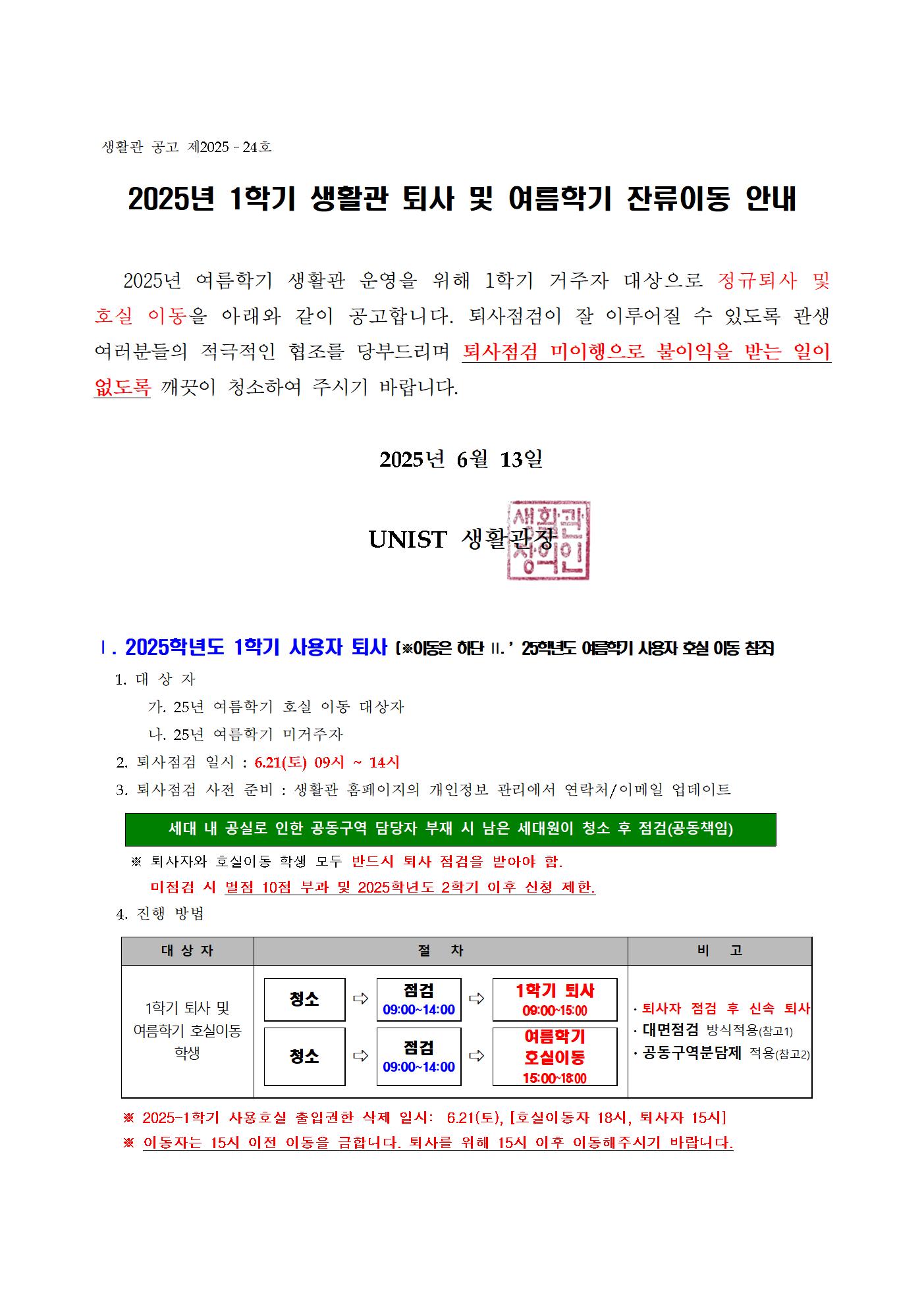 | 1031 | 2025학년도 여름학기 중도 퇴사 절차 안내 (Move out proces.. | 2025-06-24 | 1379 |