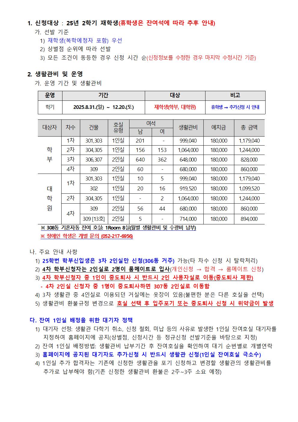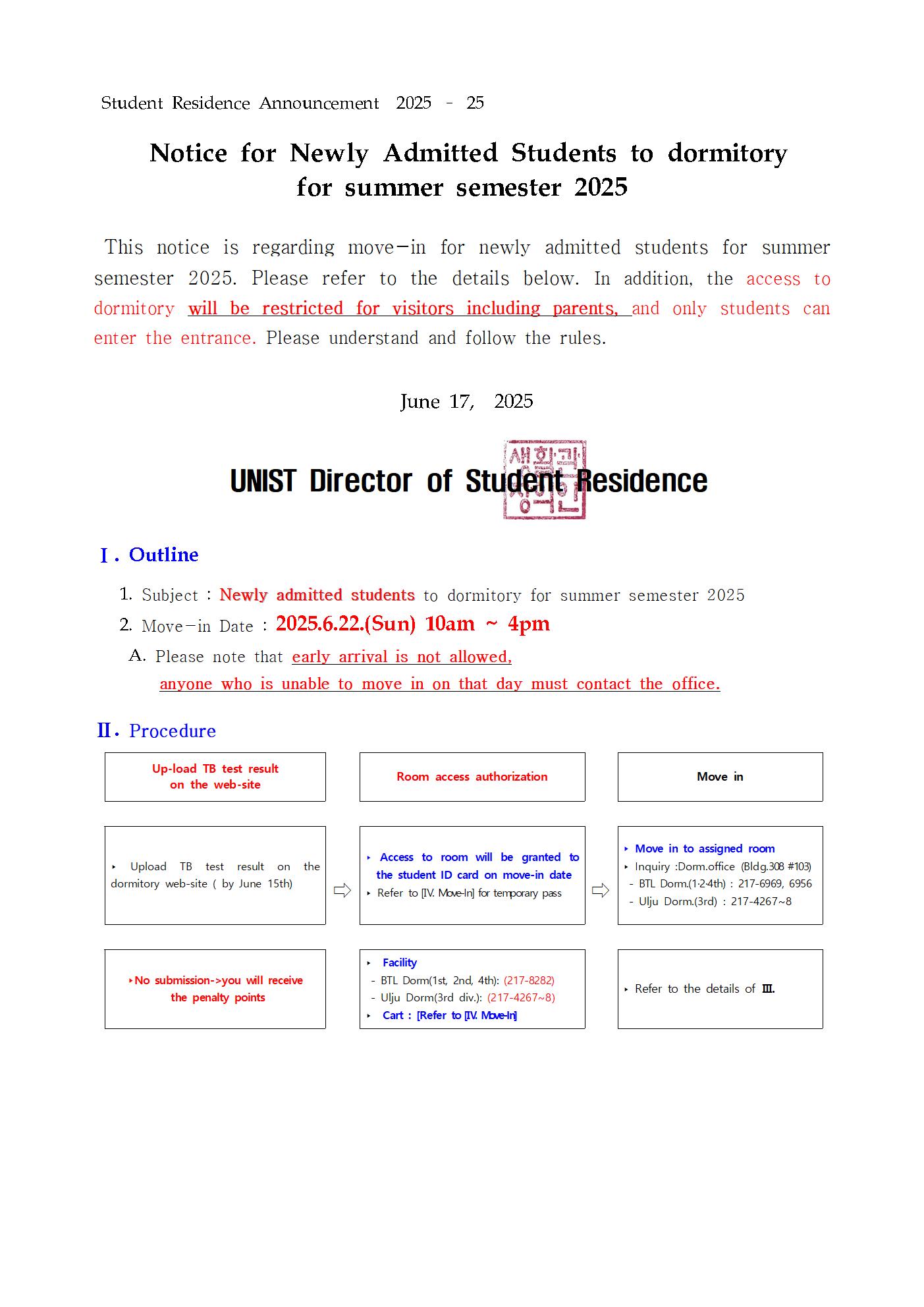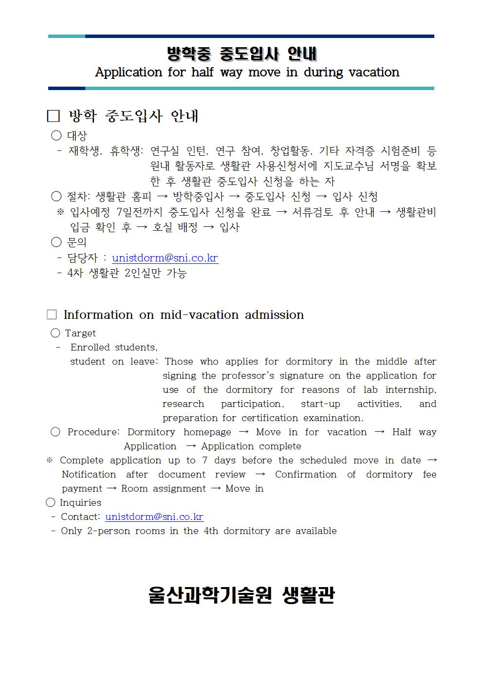 | 1032 | 방학중 중도입사 안내(Application for half way move in du.. | 2025-07-01 | 866 |