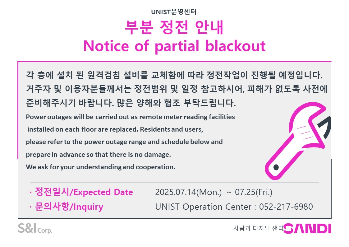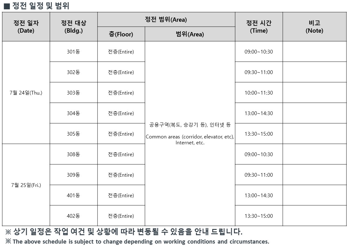 | 1034 | 부분 정전 안내 Notice of partial blackout | 2025-07-09 | 1190 |