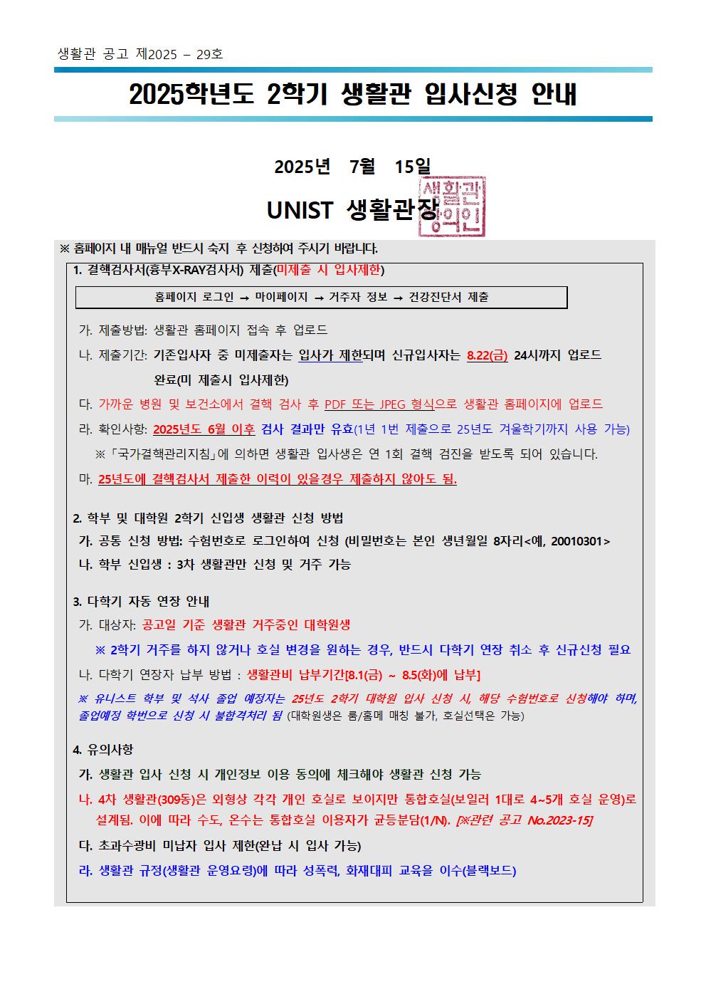 | 1028 | [No.2025-25] 2025년 여름학기 생활관 신규입사자 안내 (Not.. | 2025-06-17 | 1143 |