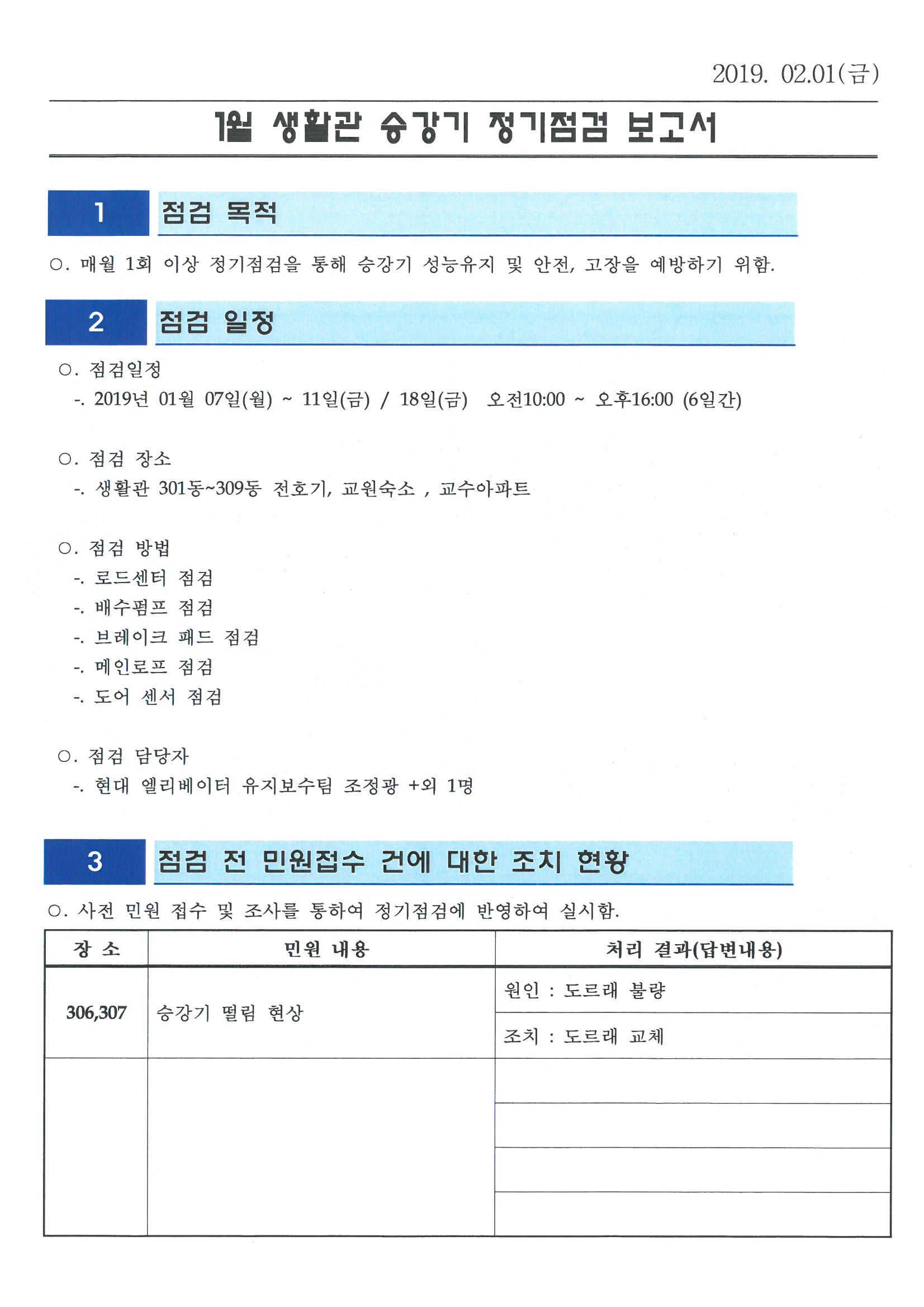 | 130 | 1월 생활관 승강기 정기점검 보고서 | 2019-02-08 | 1576 |