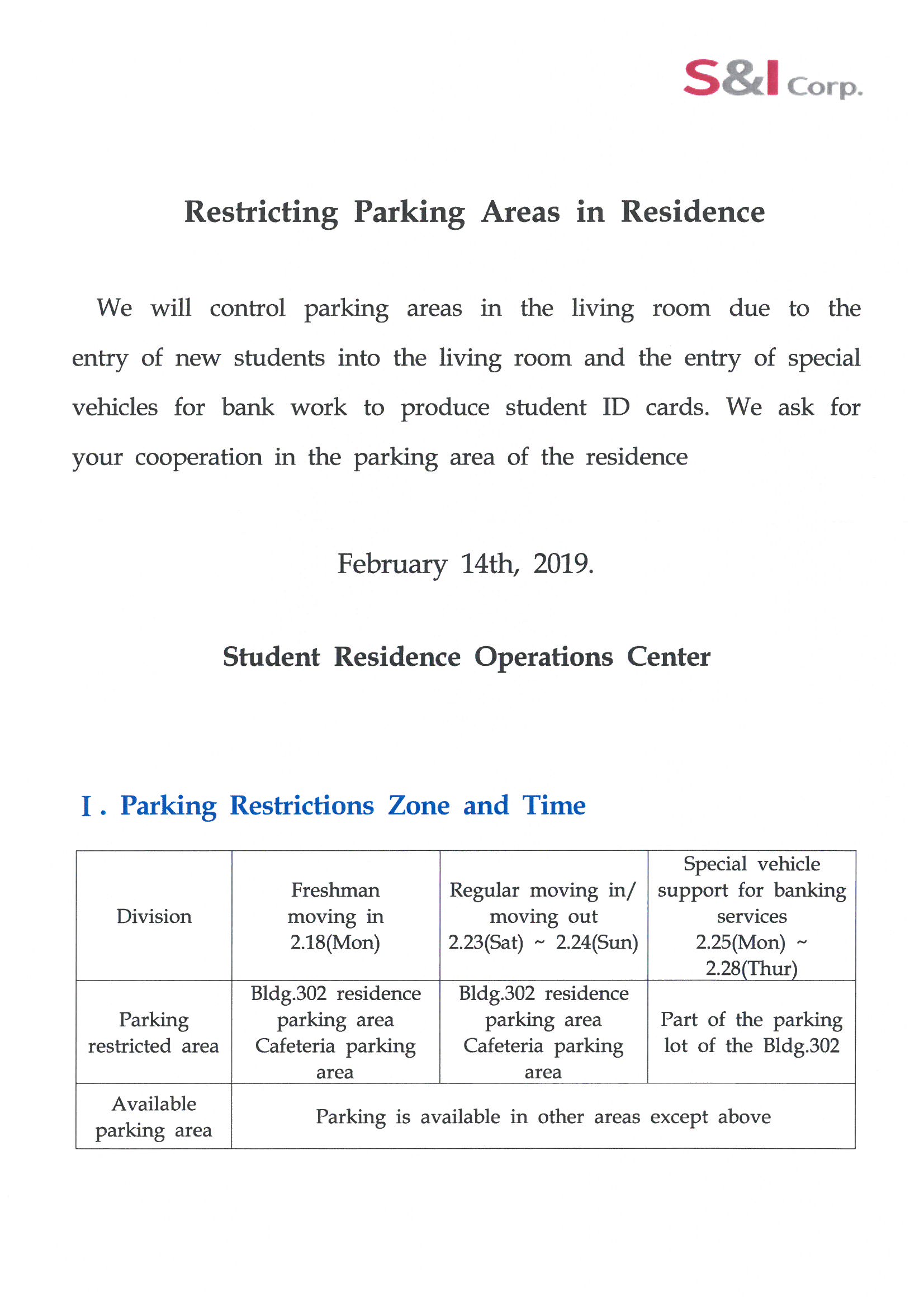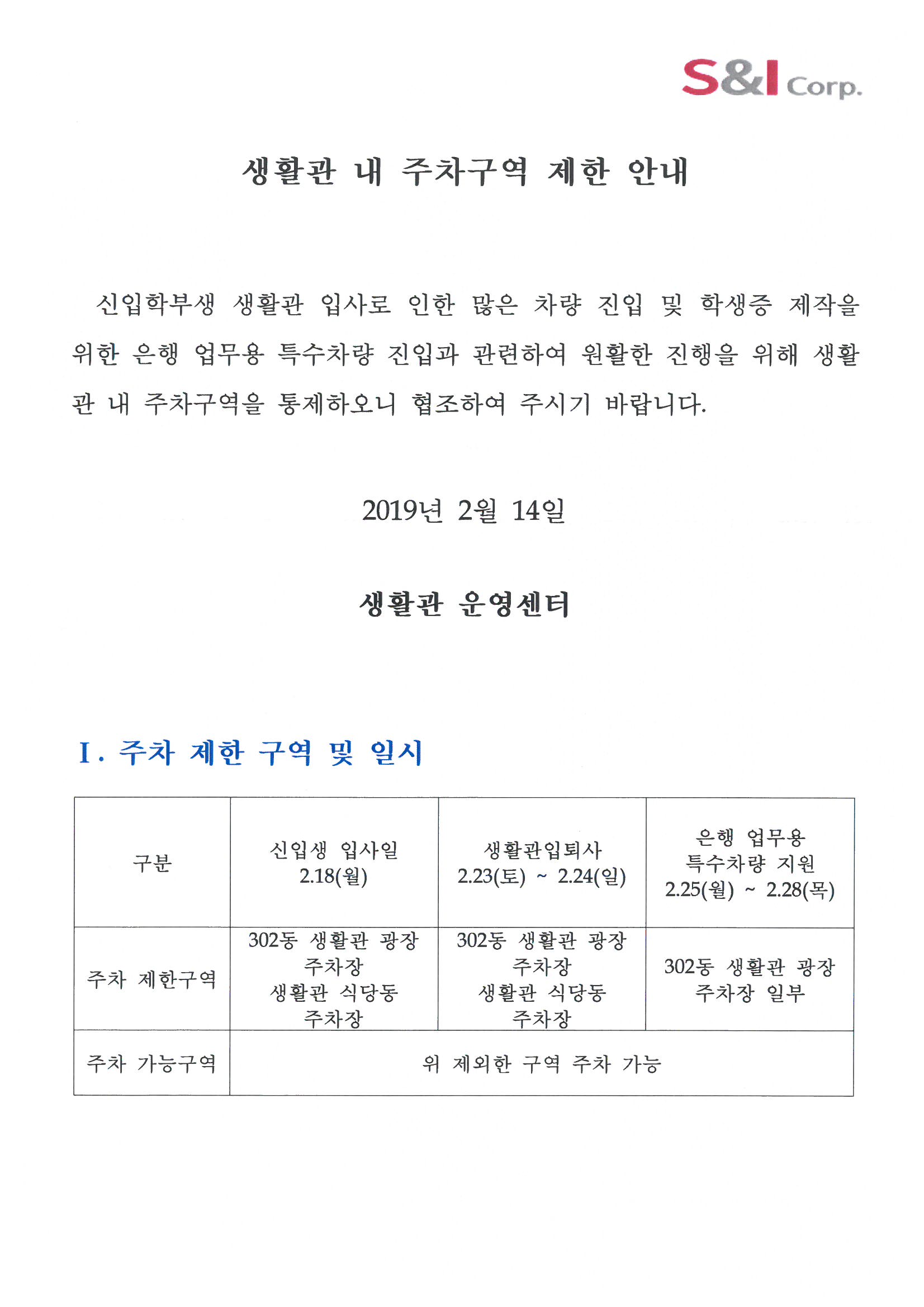 | 133 | 생활관 입퇴사 관련 주차구역 제한 안내(Restricting Parkin.. | 2019-02-14 | 2083 |