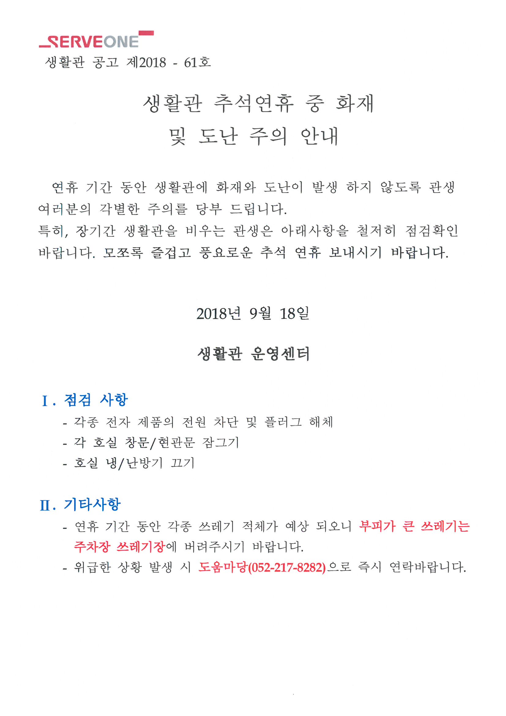 | 79 | (No.2018-61) 생활관 추석연휴 중 화재 및 도난 주의 안내(C.. | 2018-09-18 | 1396 |