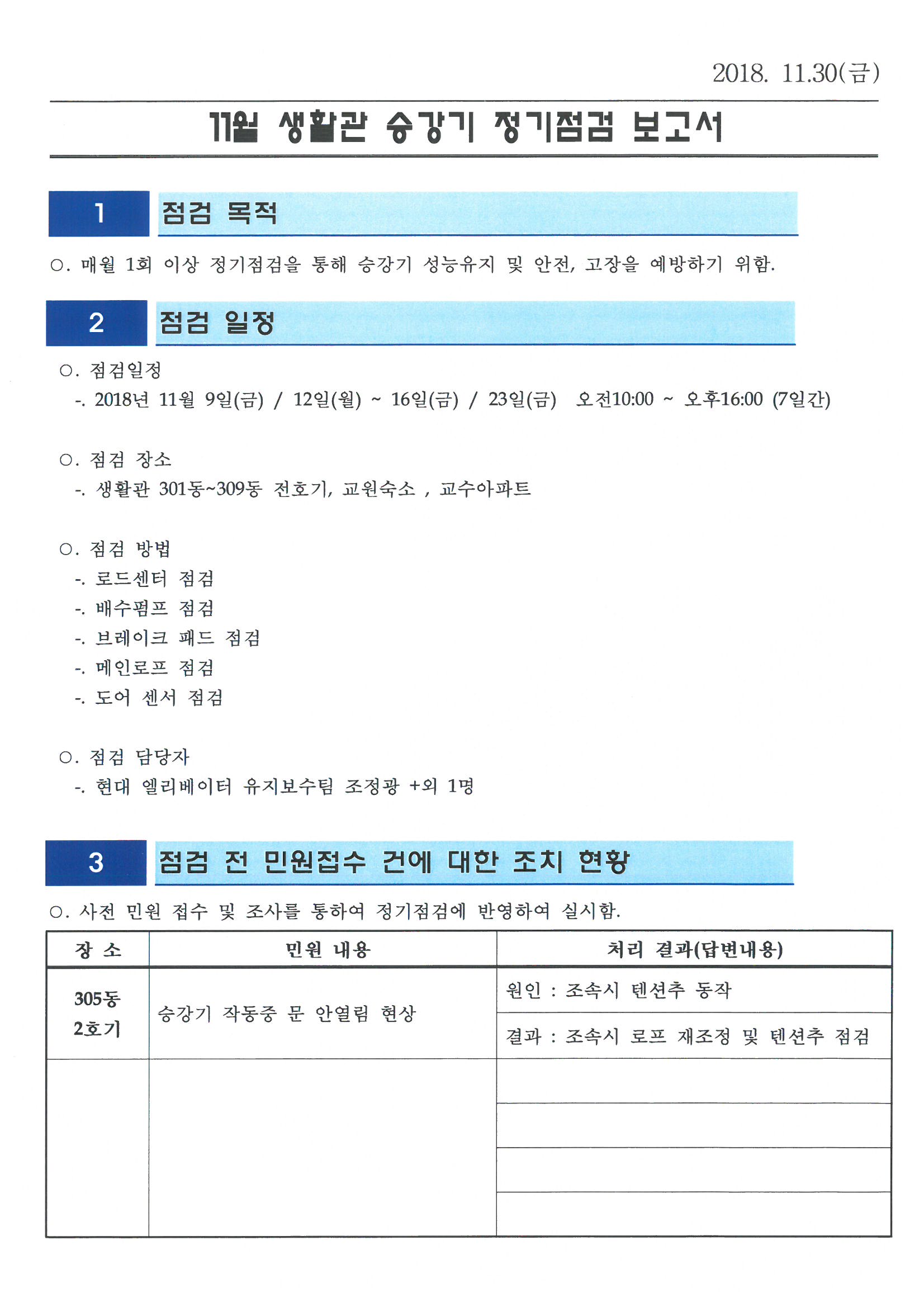 | 97 | 11월 생활관 승강기 정기점검 보고서 | 2018-12-04 | 1785 |