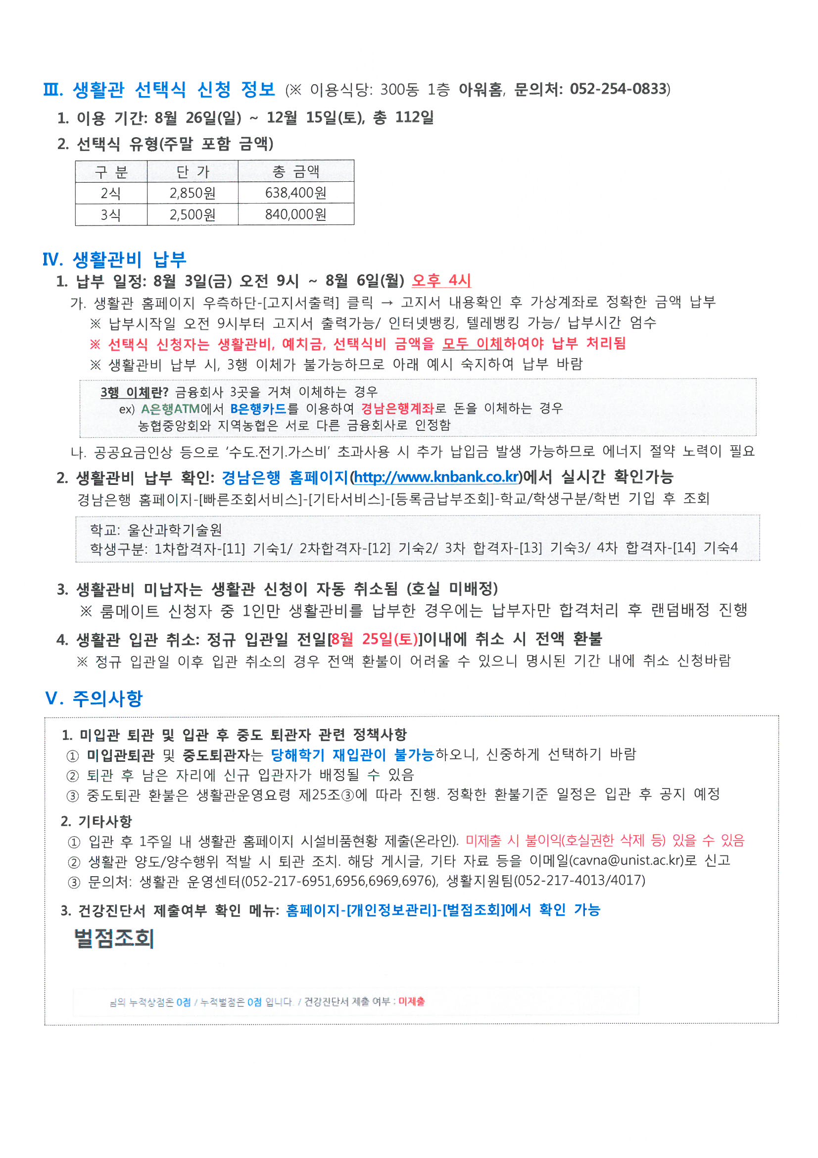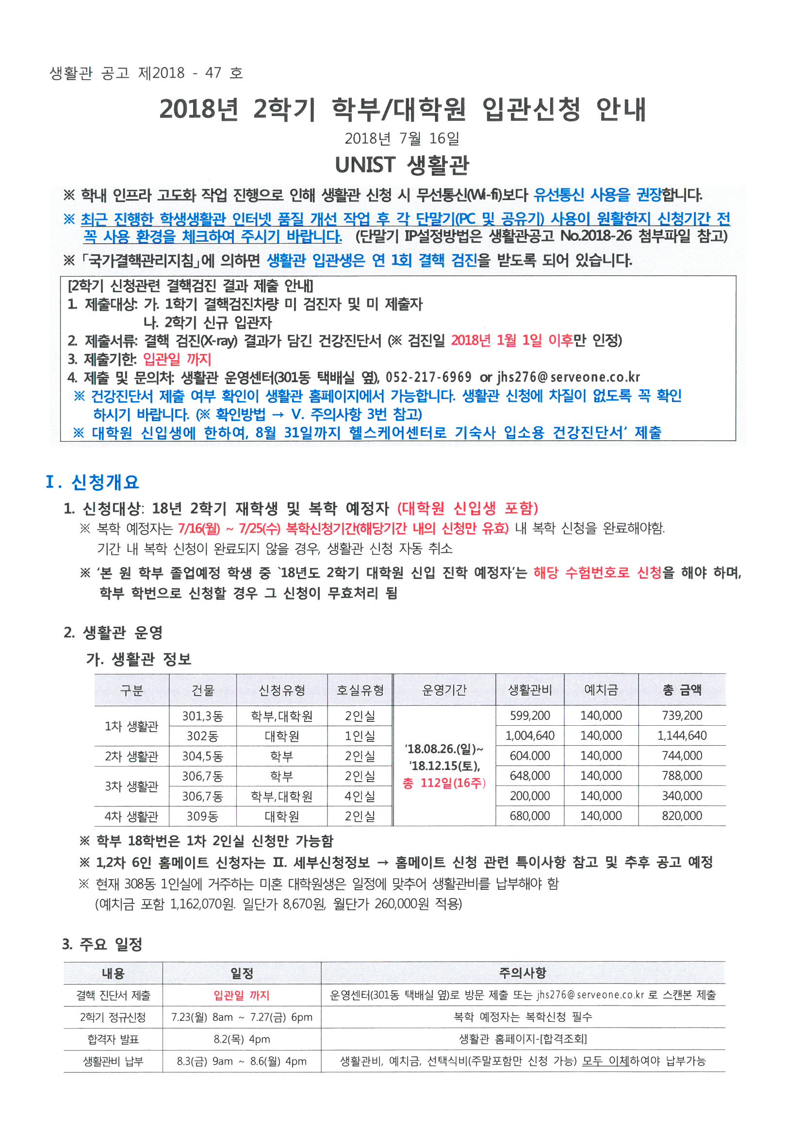 | 65 | (No.2018-50) 18년 2학기 생활관 추가 입관신청 일정 안내(S.. | 2018-08-01 | 3991 |