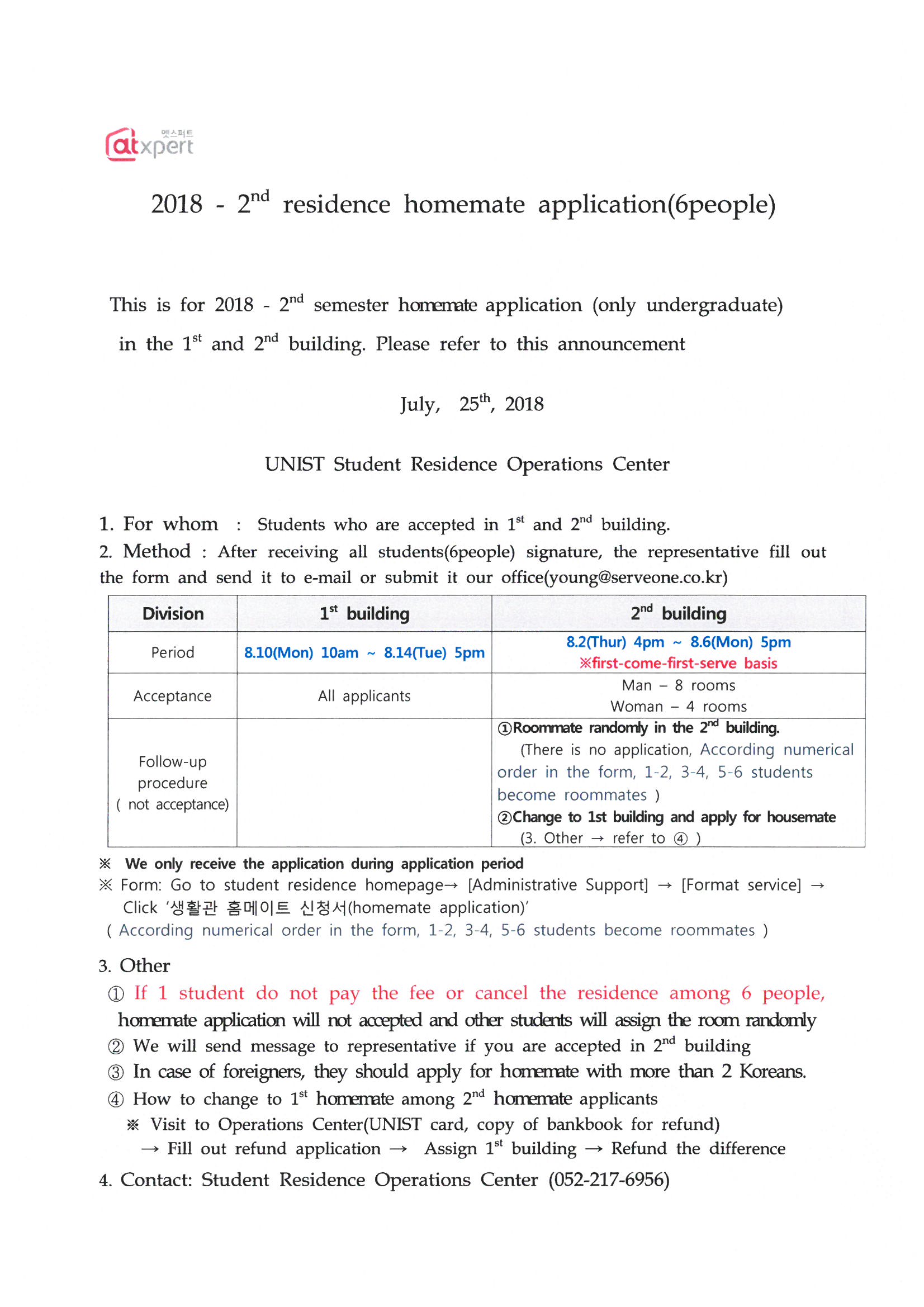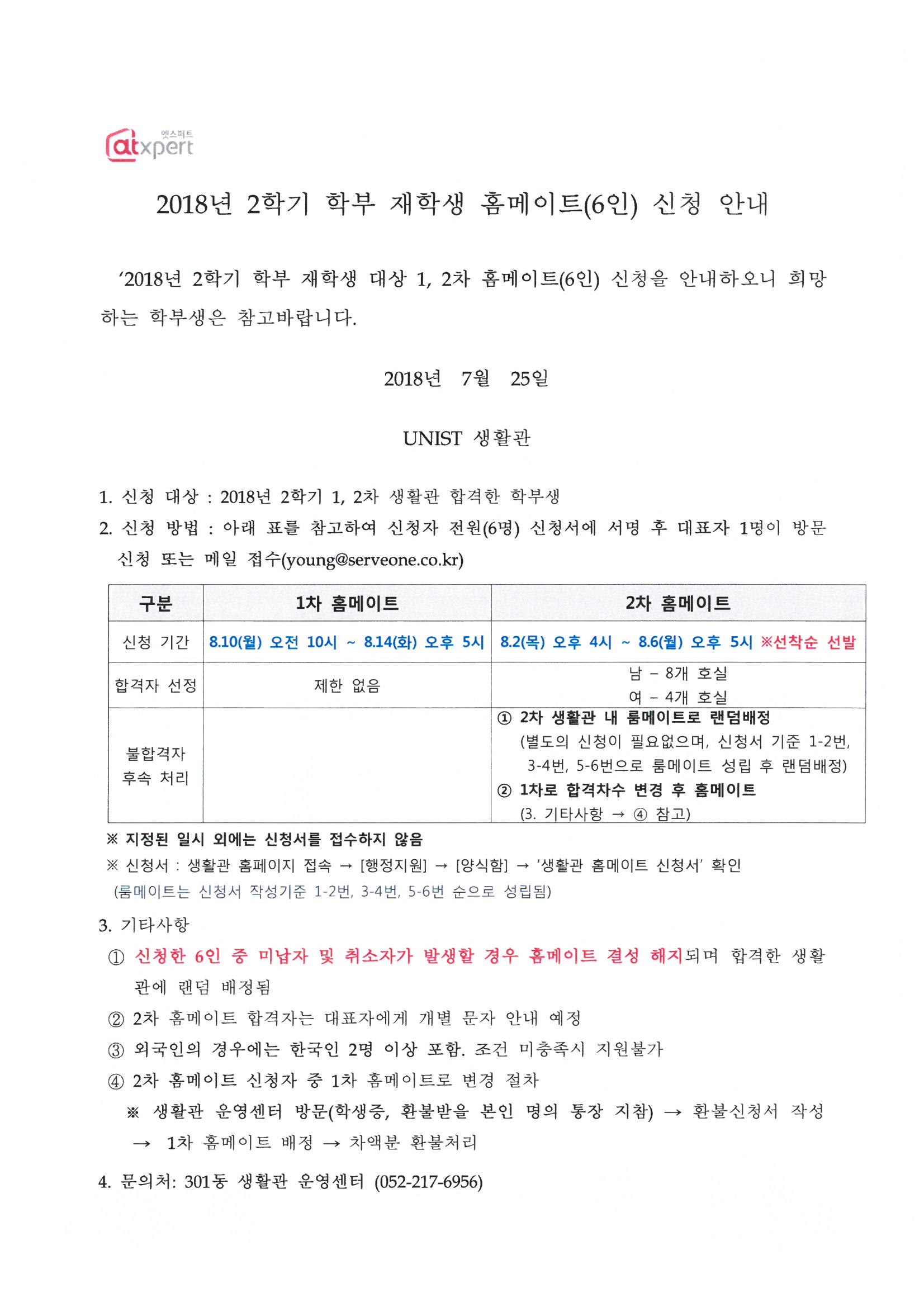 | 61 | (재수정)18년 2학기 학부 재학생 홈메이트(6인) 신청 안내(1.. | 2018-07-27 | 4310 |