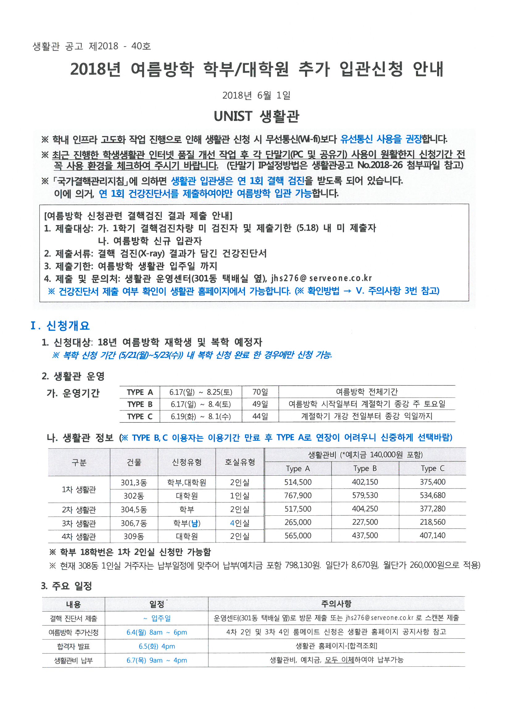 | 47 | (No.2018-40) 2018년 여름방학 학부/대학원 추가 입관신청 .. | 2018-06-01 | 2553 |