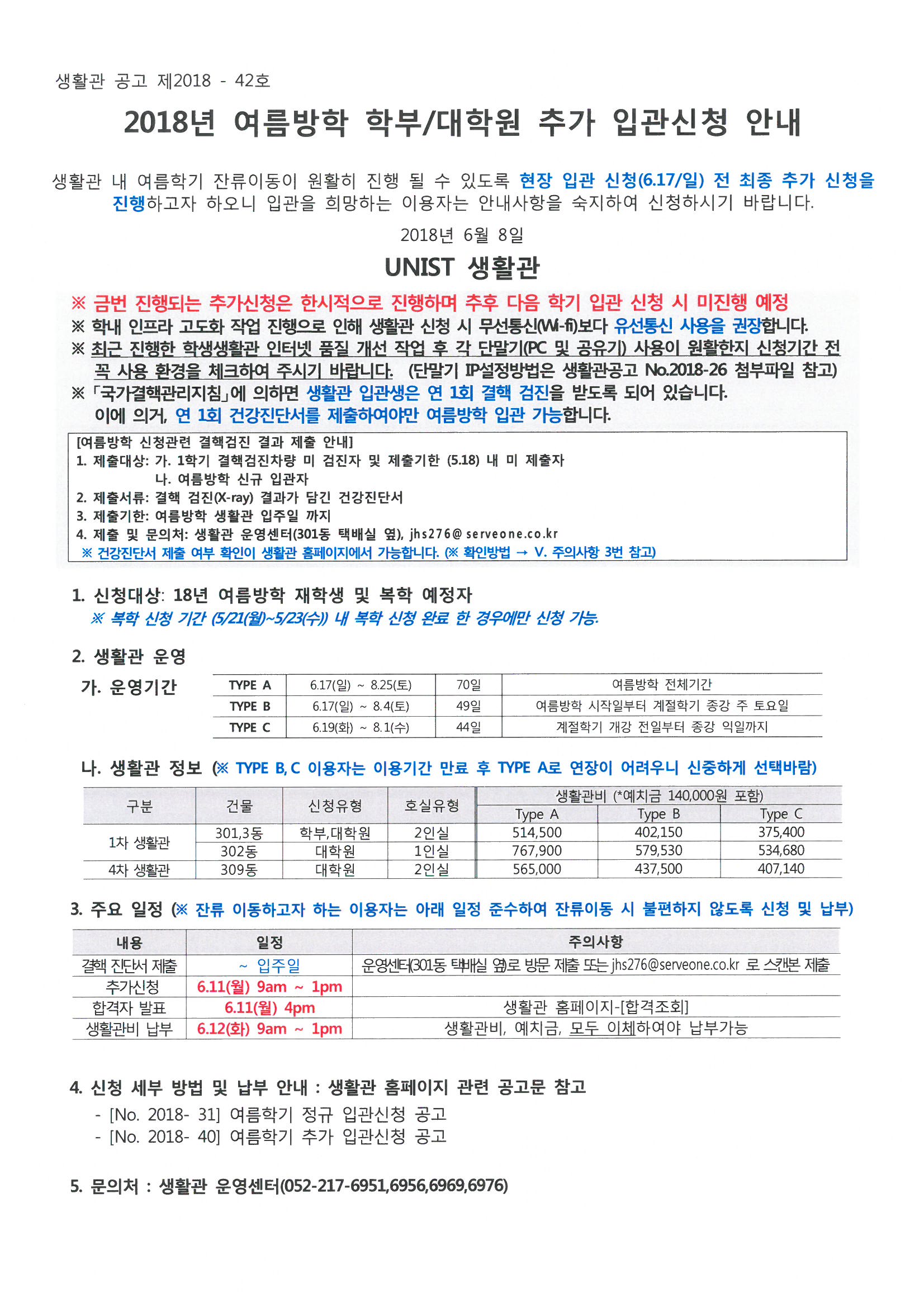 | 49 | (No.2018-42) 2018년 여름방학 학부/대학원 추가 입관신청 .. | 2018-06-08 | 2320 |