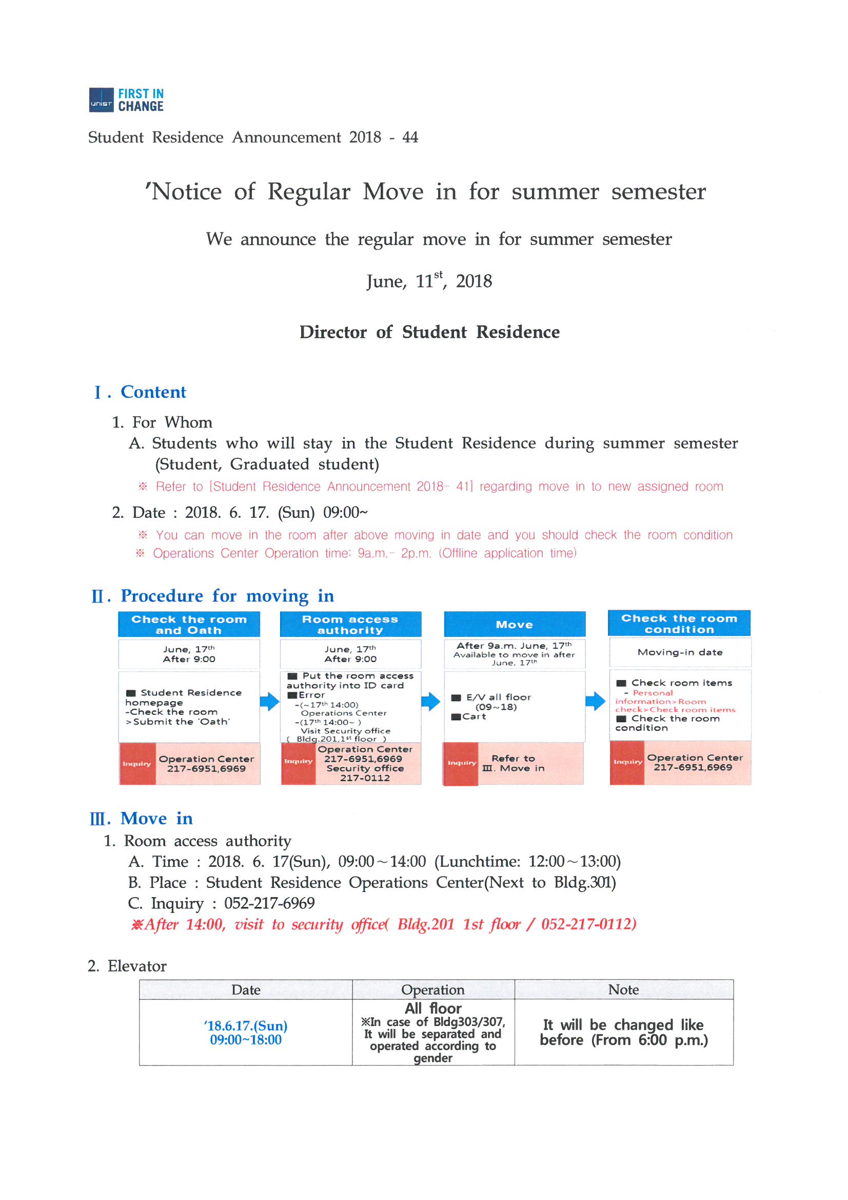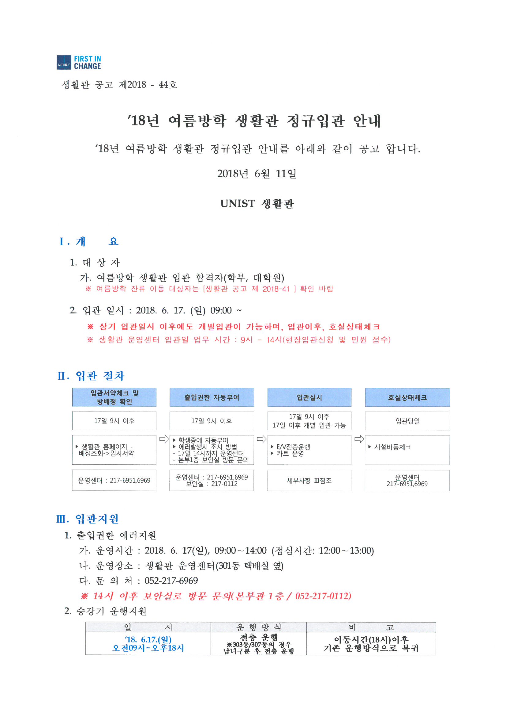 | 51 | (No.2018-44) 18년 여름방학 생활관 정규입관 안내(Regular .. | 2018-06-13 | 2964 |