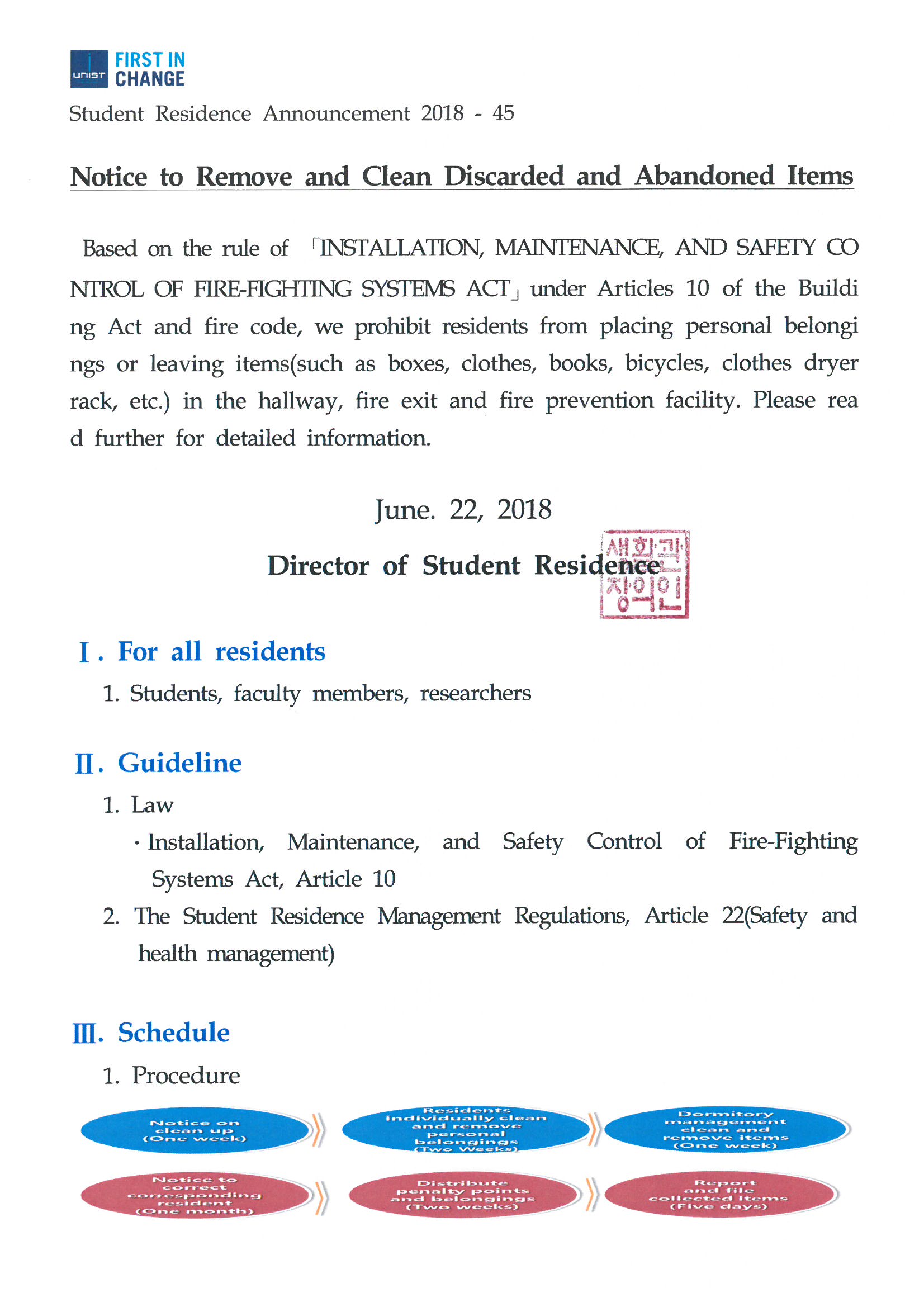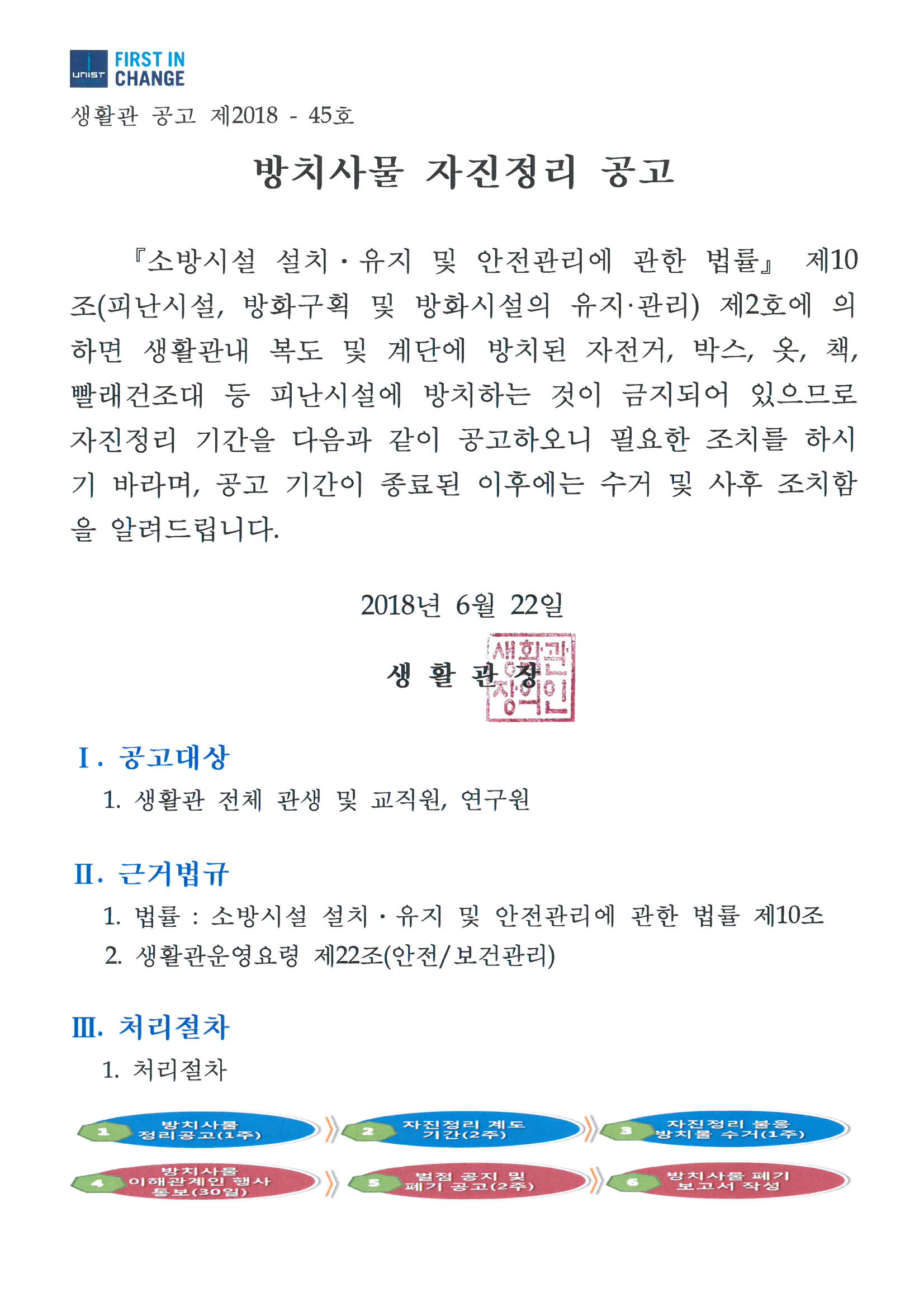 | 53 | (No.2018-45) 방치사물 자진정리 공고(Notice to Remove and.. | 2018-06-22 | 1533 |