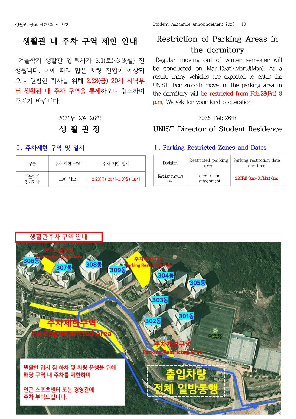 | 1000 | [No.2025-10] 생활관 내 주차 구역 제한 안내 (Restriction .. | 2025-02-26 | 720 |