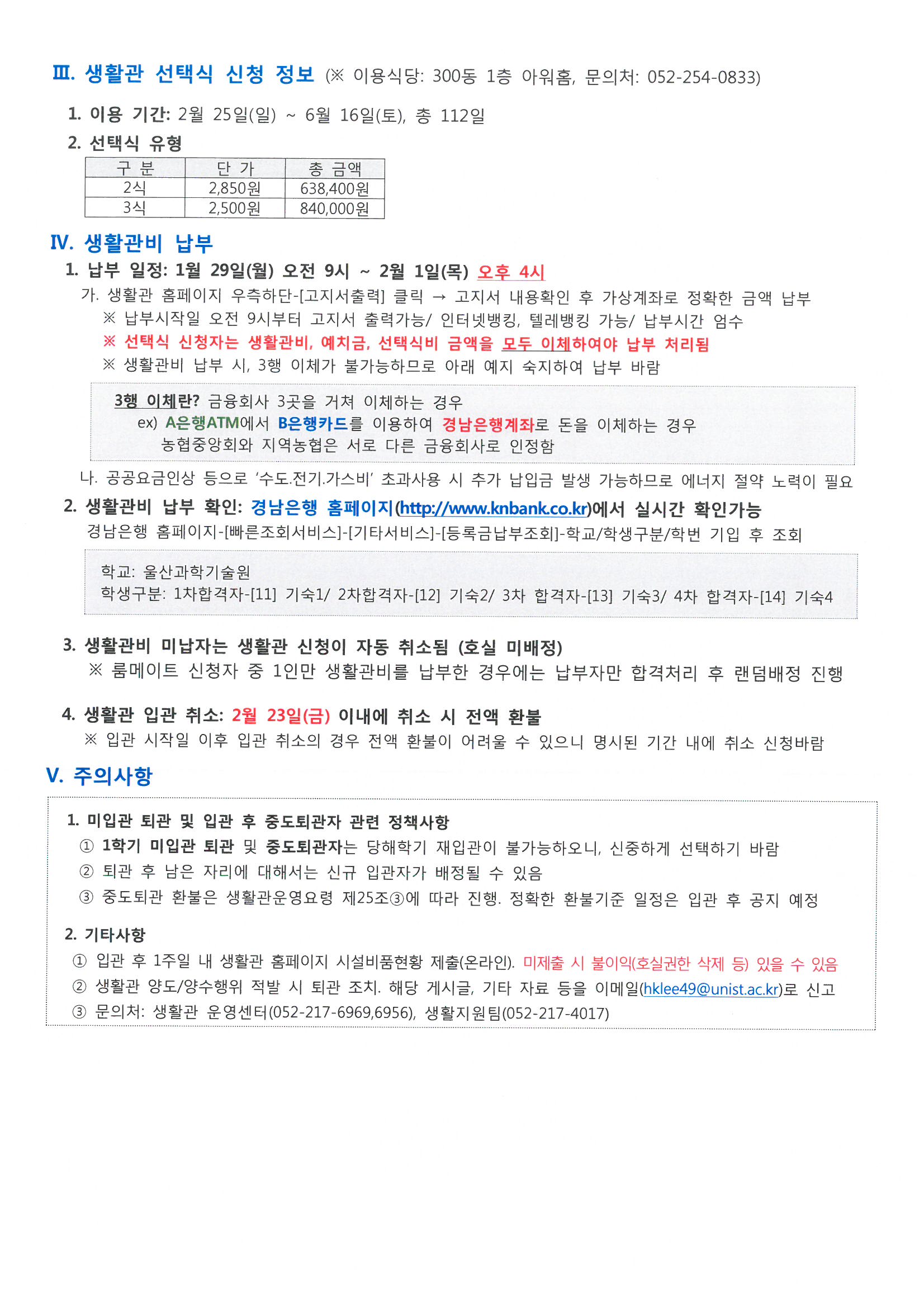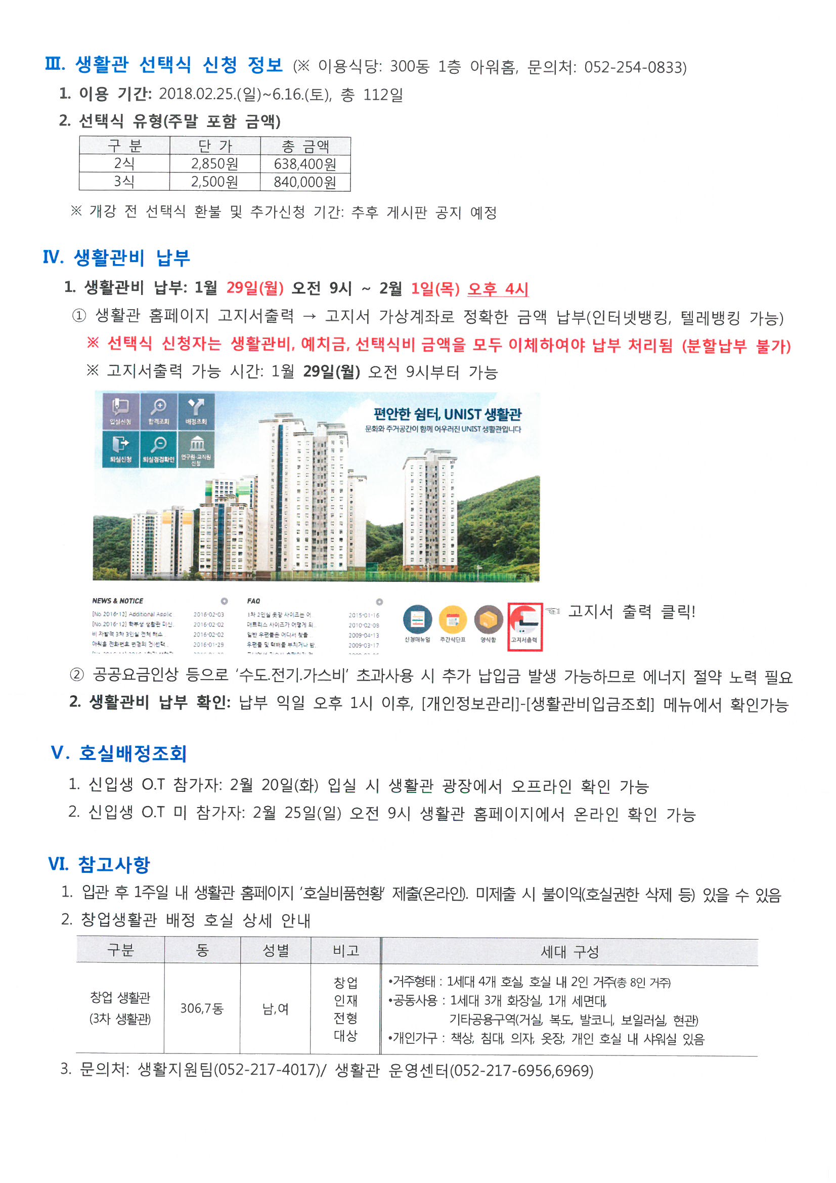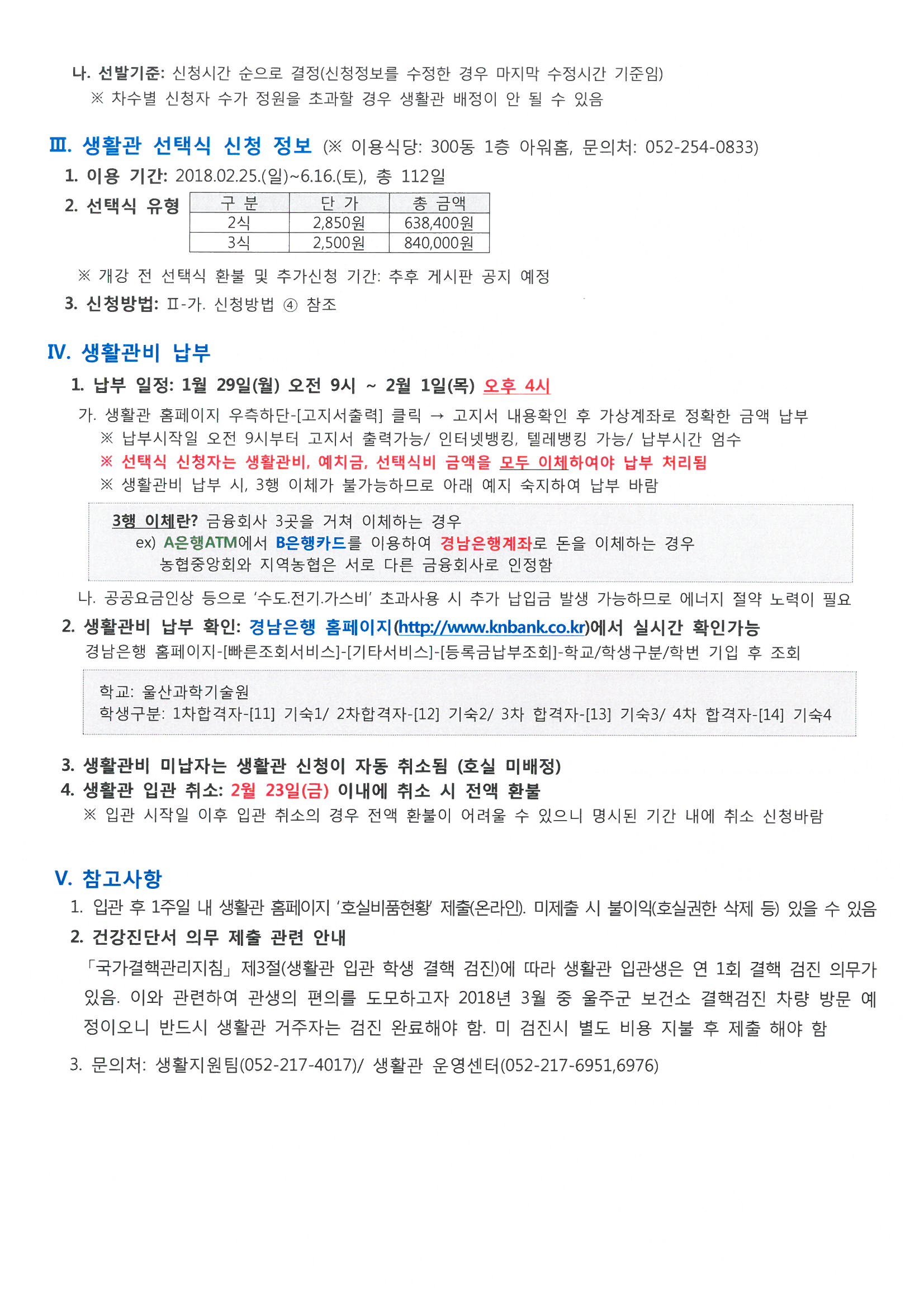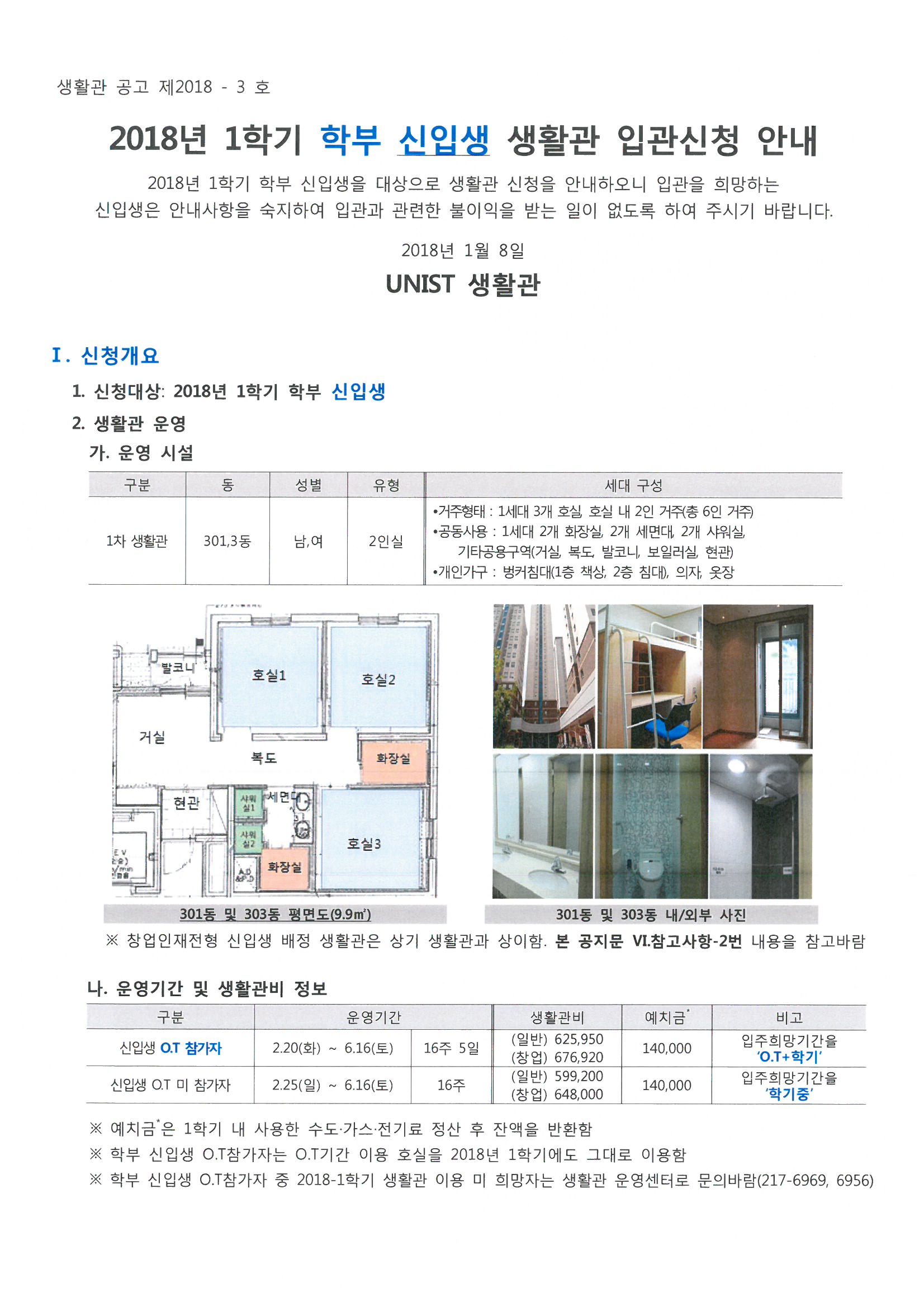| 3 | (No.2018-03) 2018년 1학기 학부 신입생 생활관 입관신청 안.. | 2018-01-09 | 5577 |