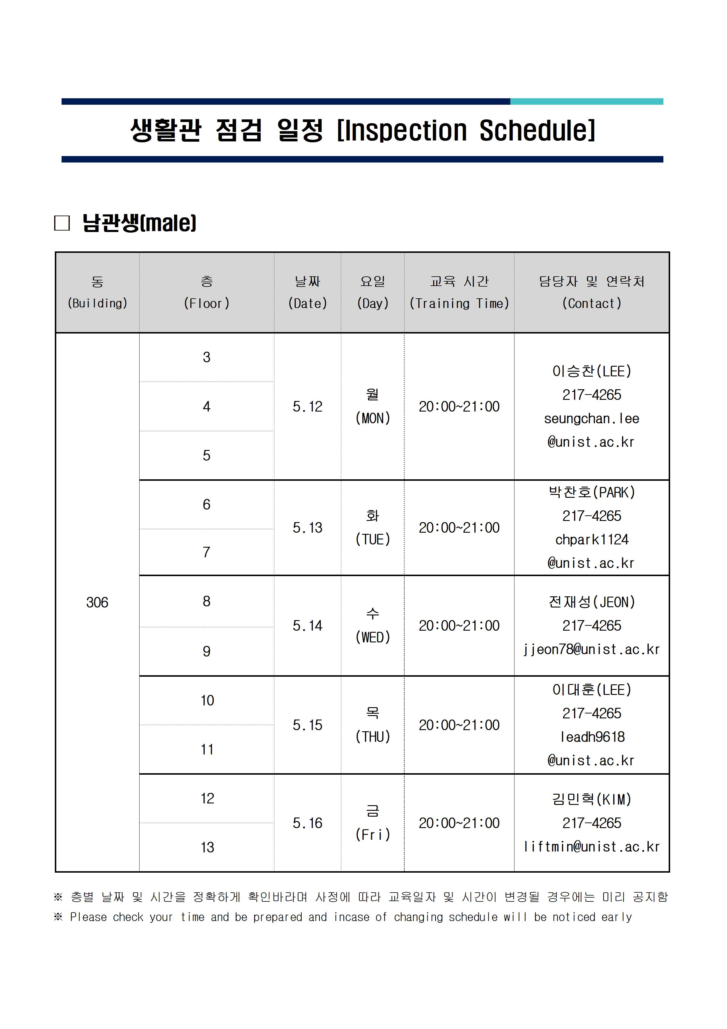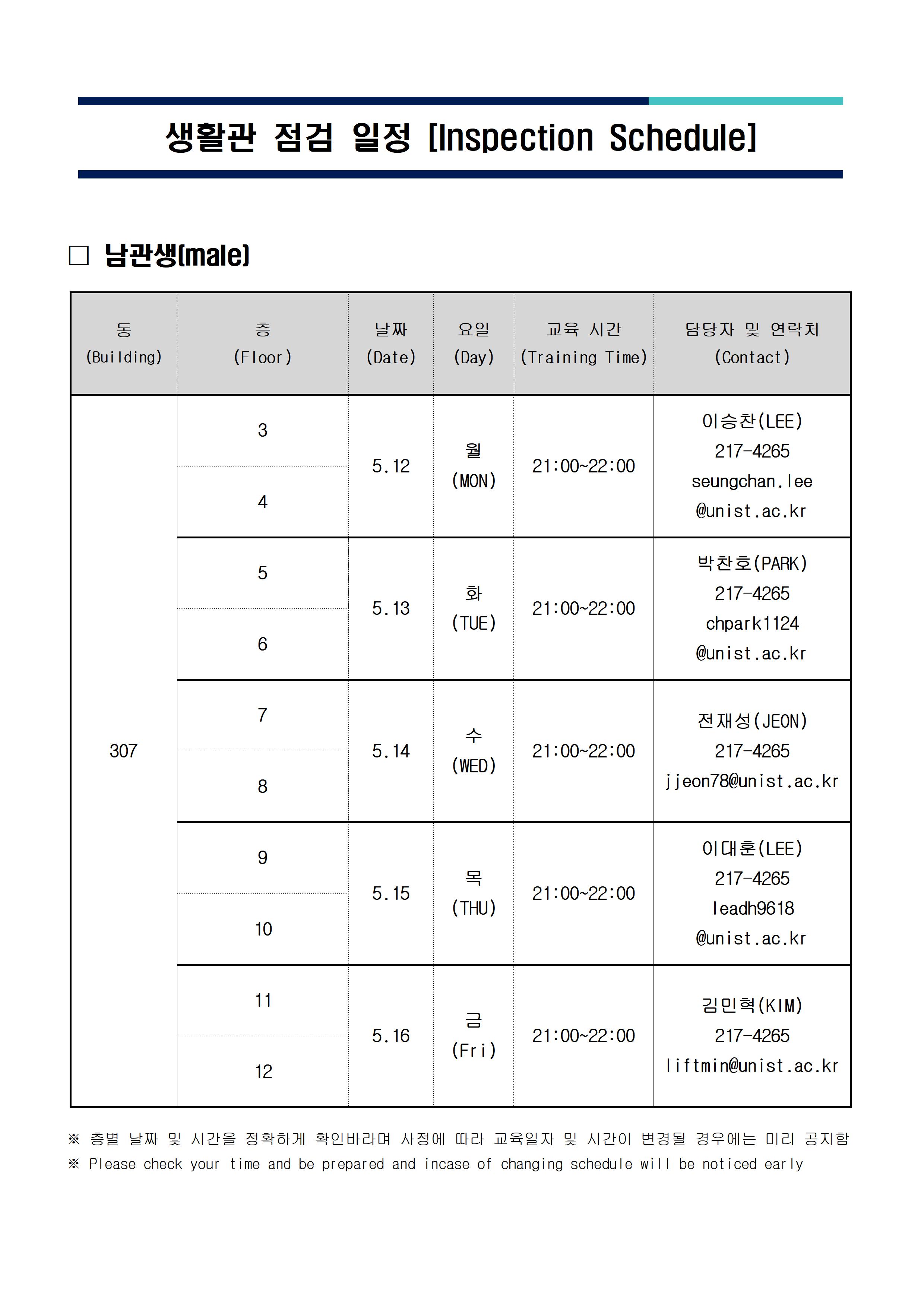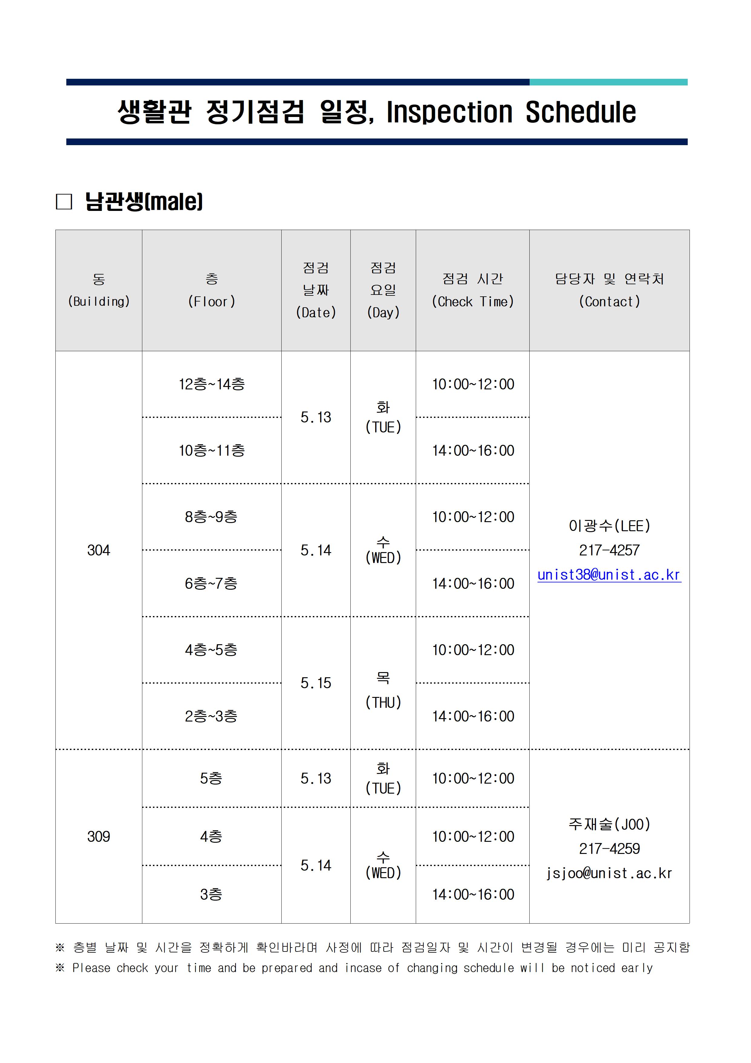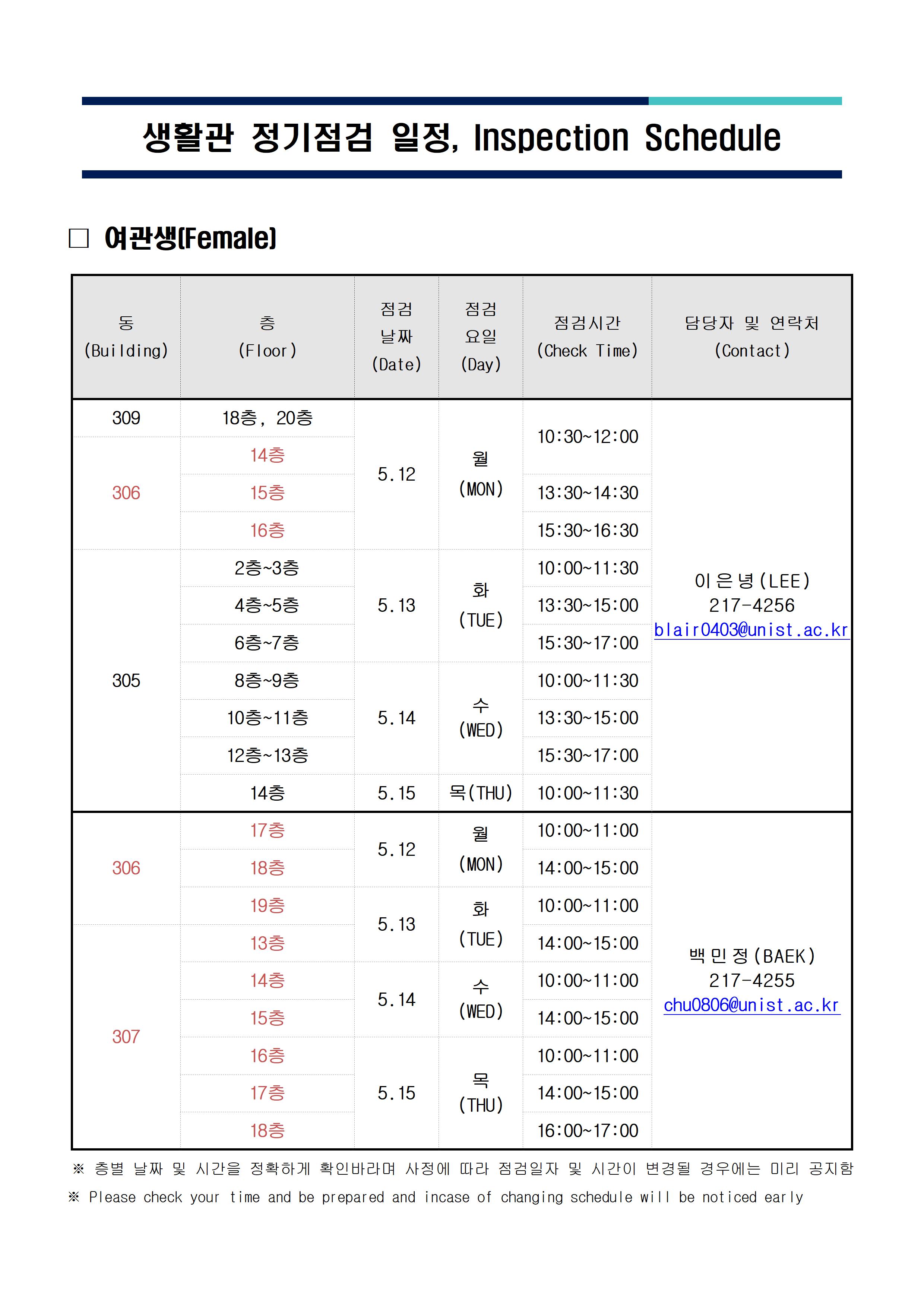 | 1012 | [No.2025-17] 2025년 1학기 생활관 정기점검(regular inspec.. | 2025-04-29 | 6305 |