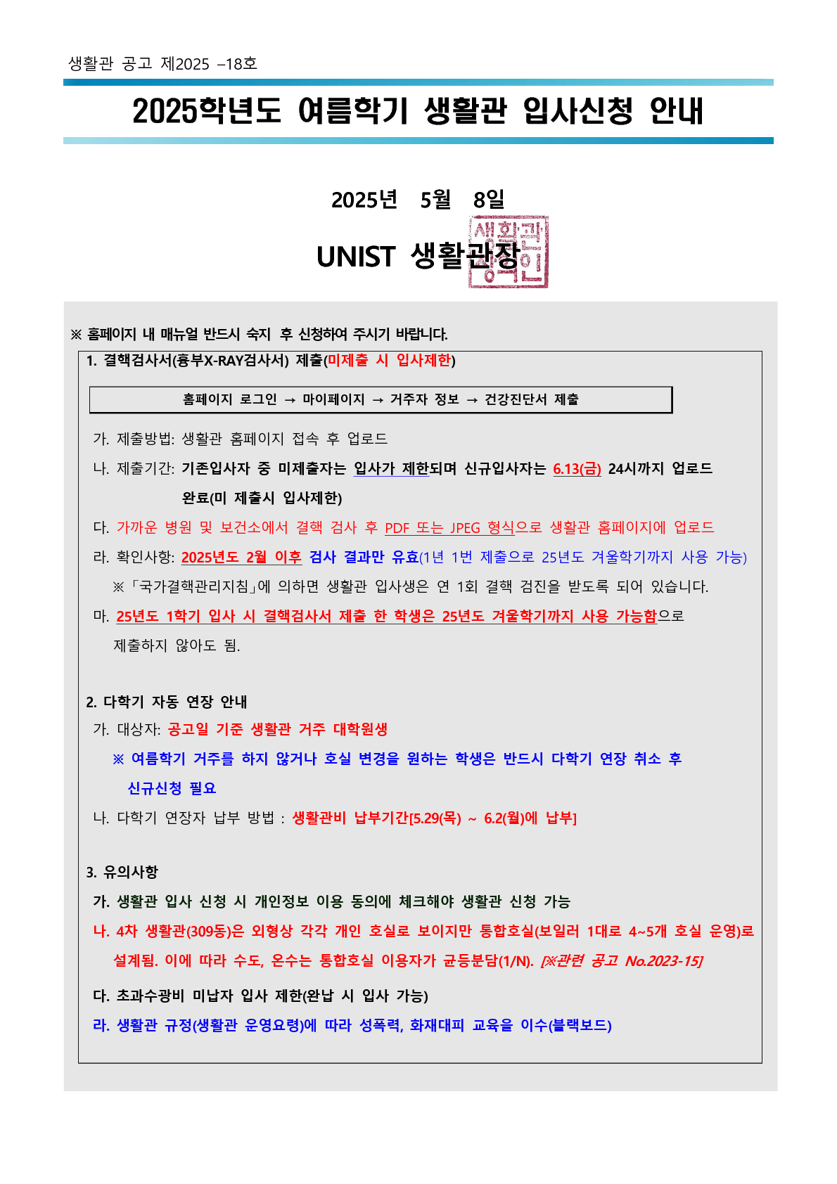 | 1013 | [No.2025-18]2025학년도 여름학기 생활관 입사신청 안내(Not.. | 2025-05-08 | 6173 |