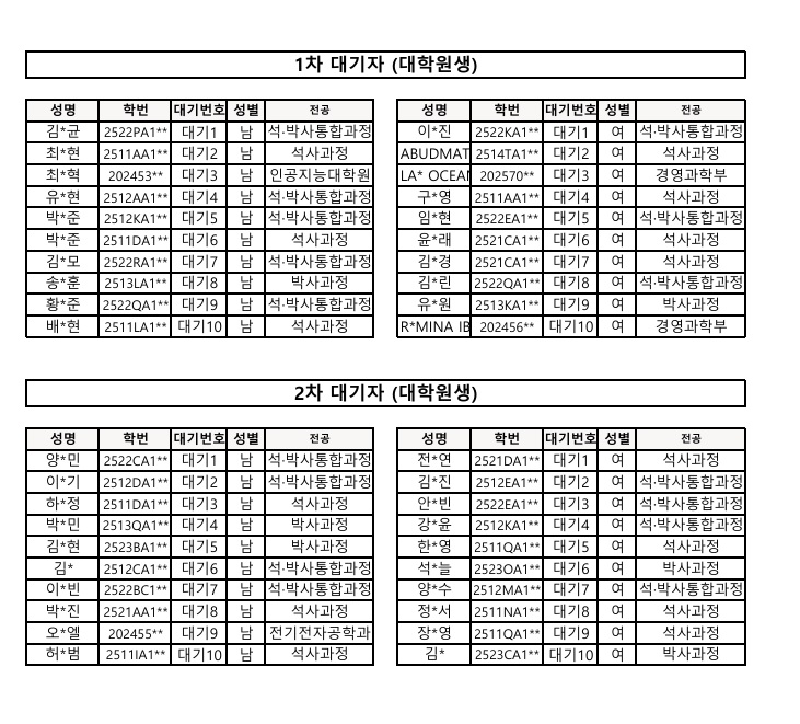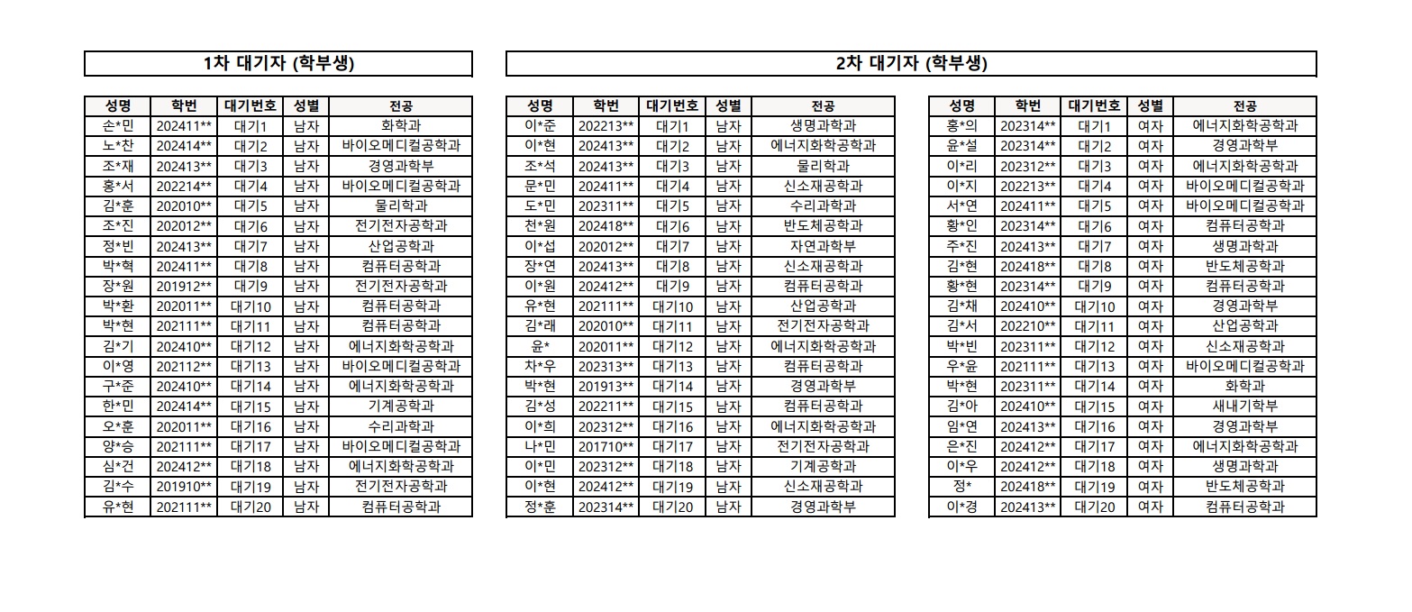 | 981 | 2025학년도 1학기 신청 탈락 관련(Application results for .. | 2025-01-23 | 3255 |