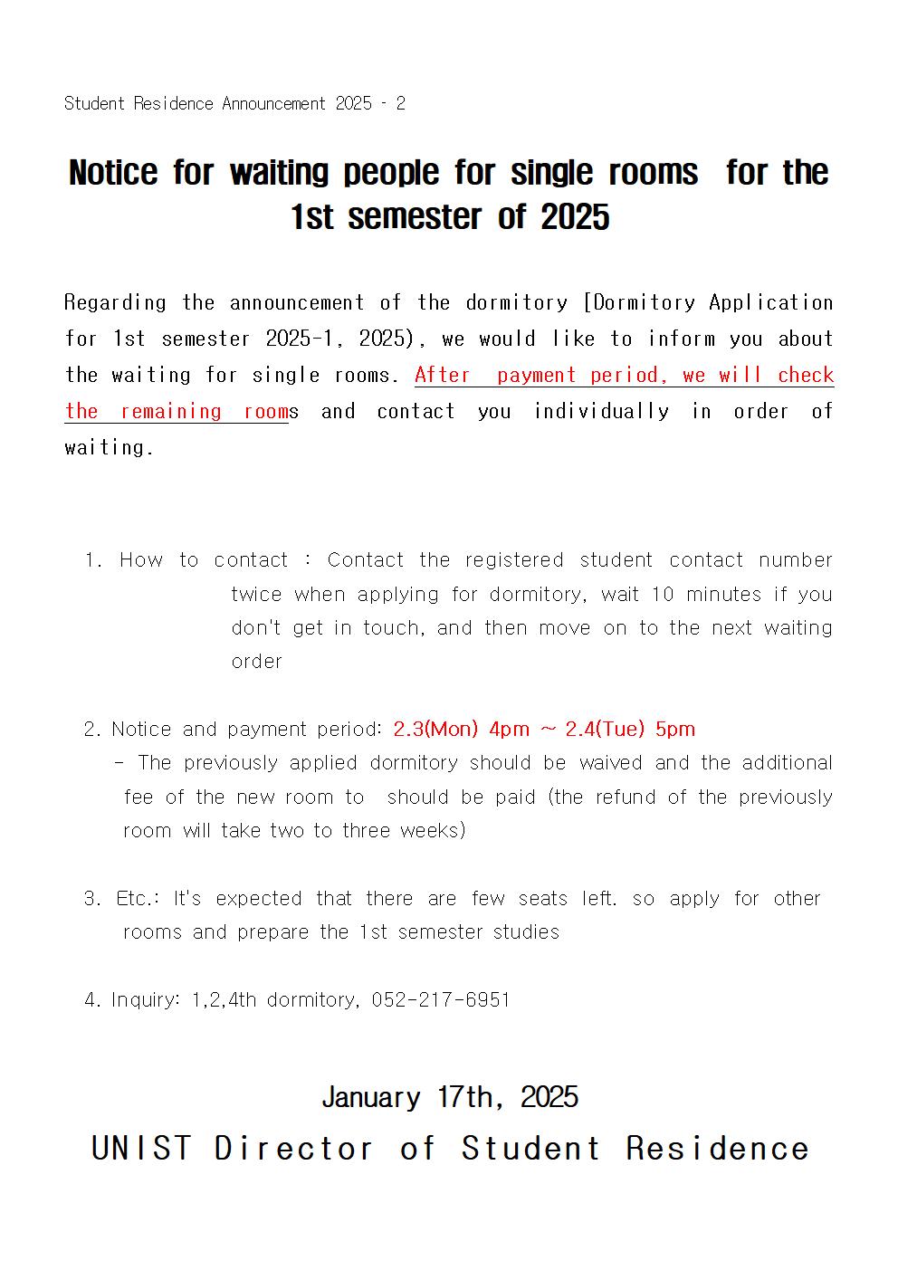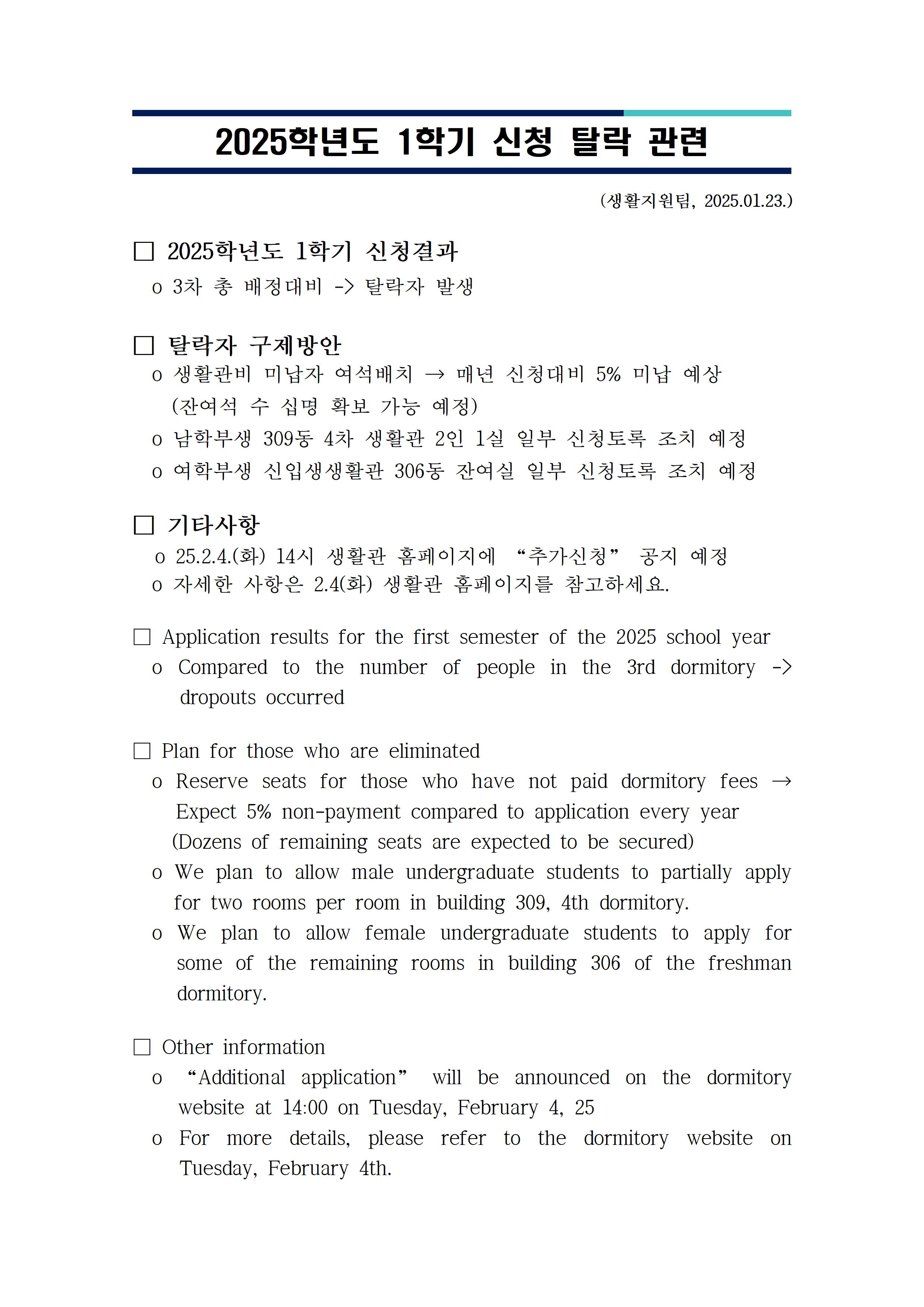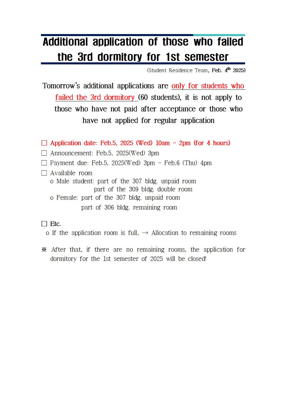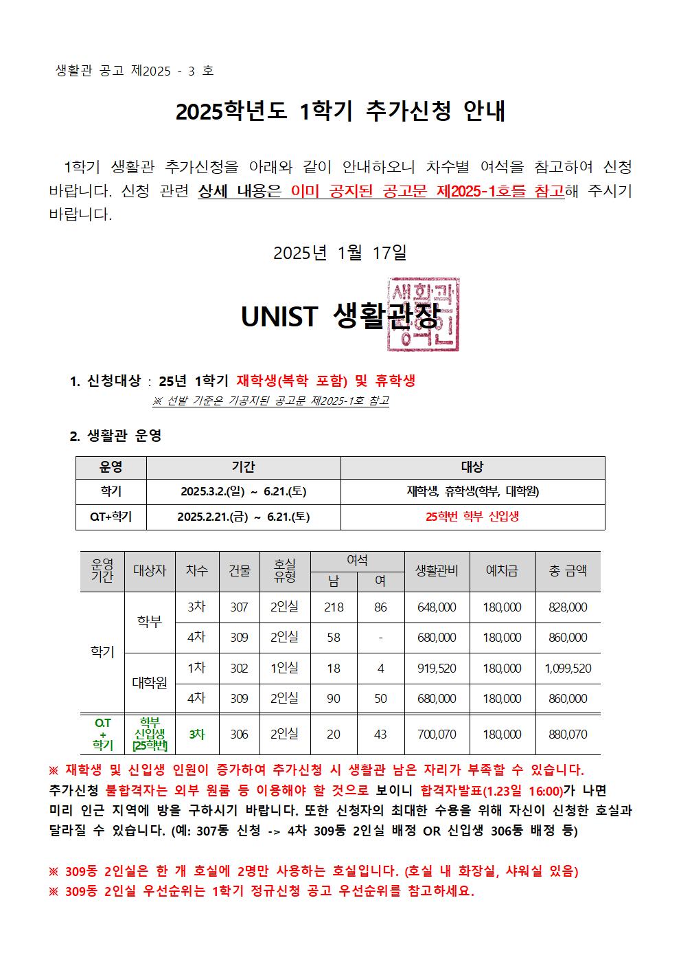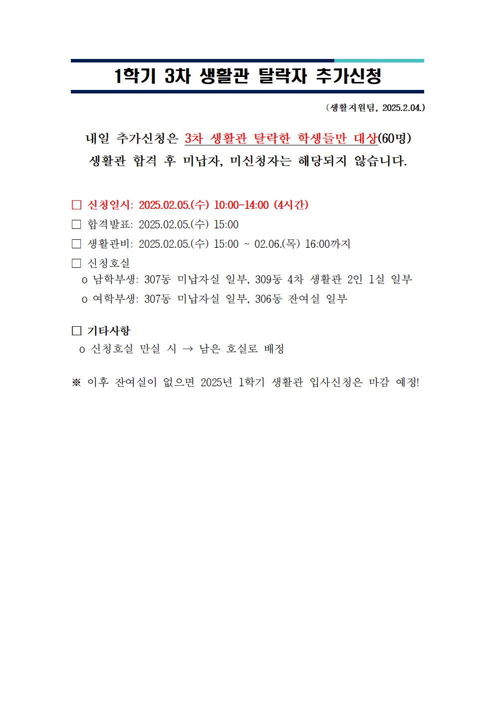| 983 | 1학기 3차 생활관 탈락자 추가신청(Additional application .. | 2025-02-04 | 1282 |