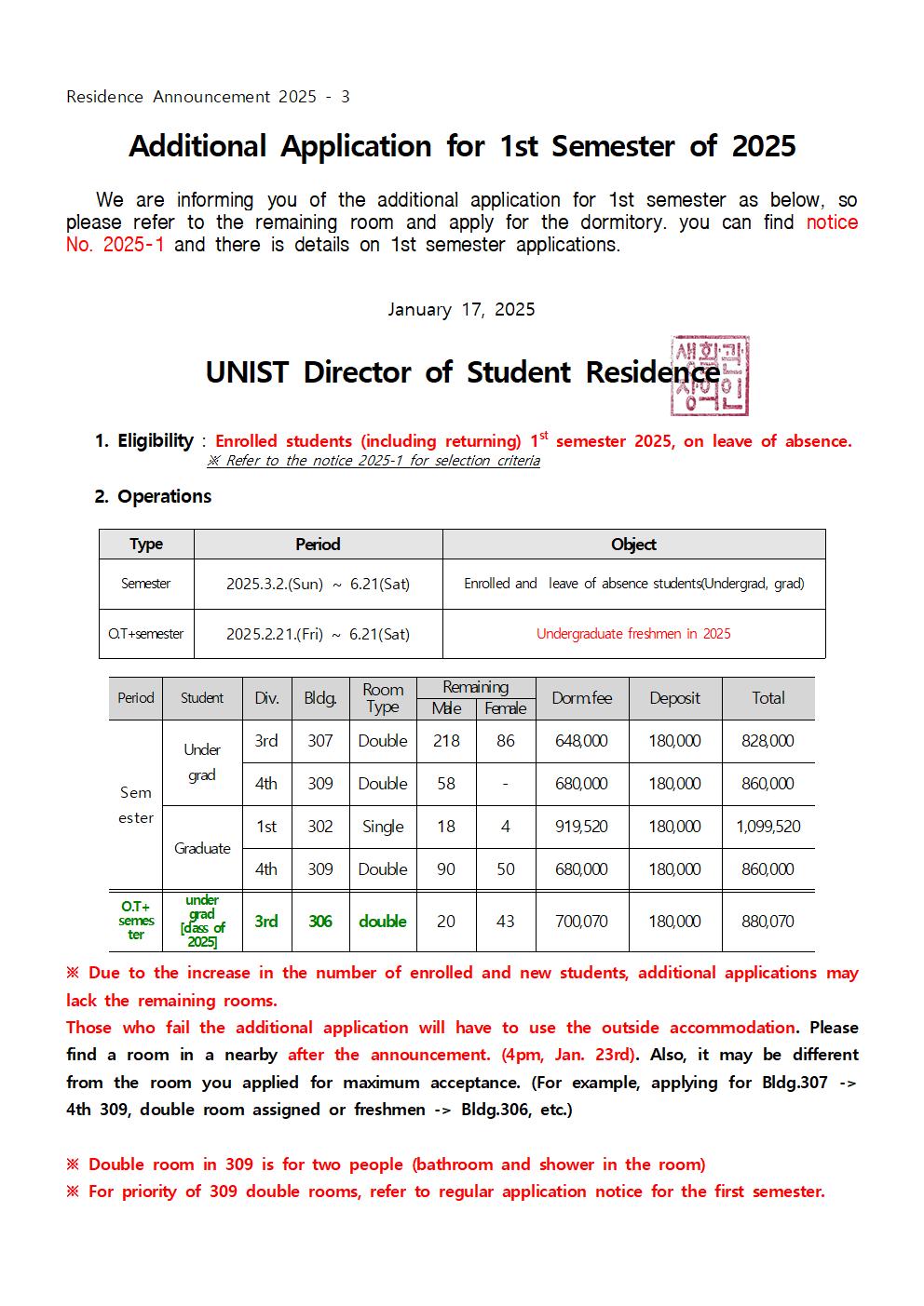 | 980 | [No.2025-04] 생활관비 납부유예 신청 안내 (Notice of appl.. | 2025-01-23 | 1541 |