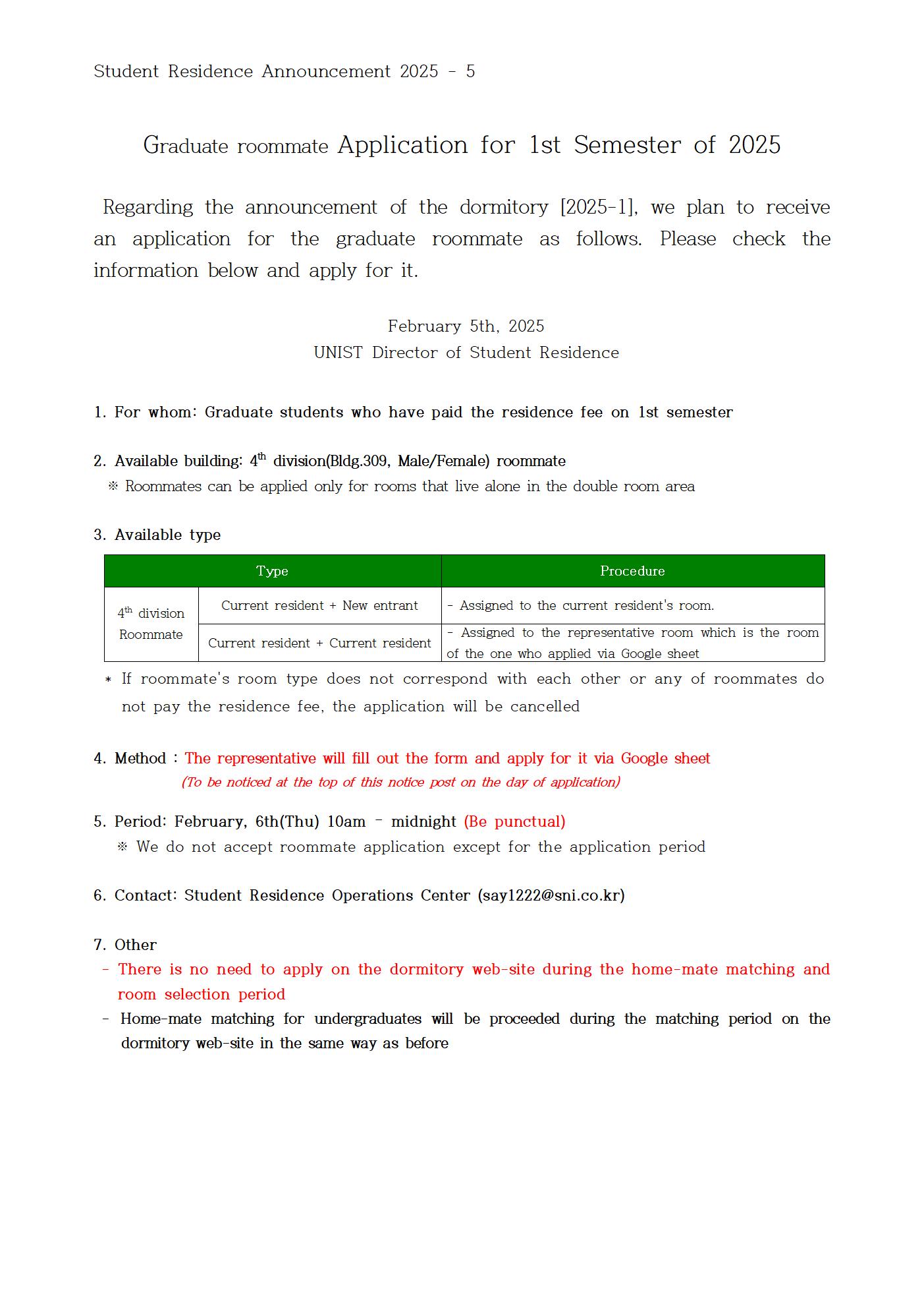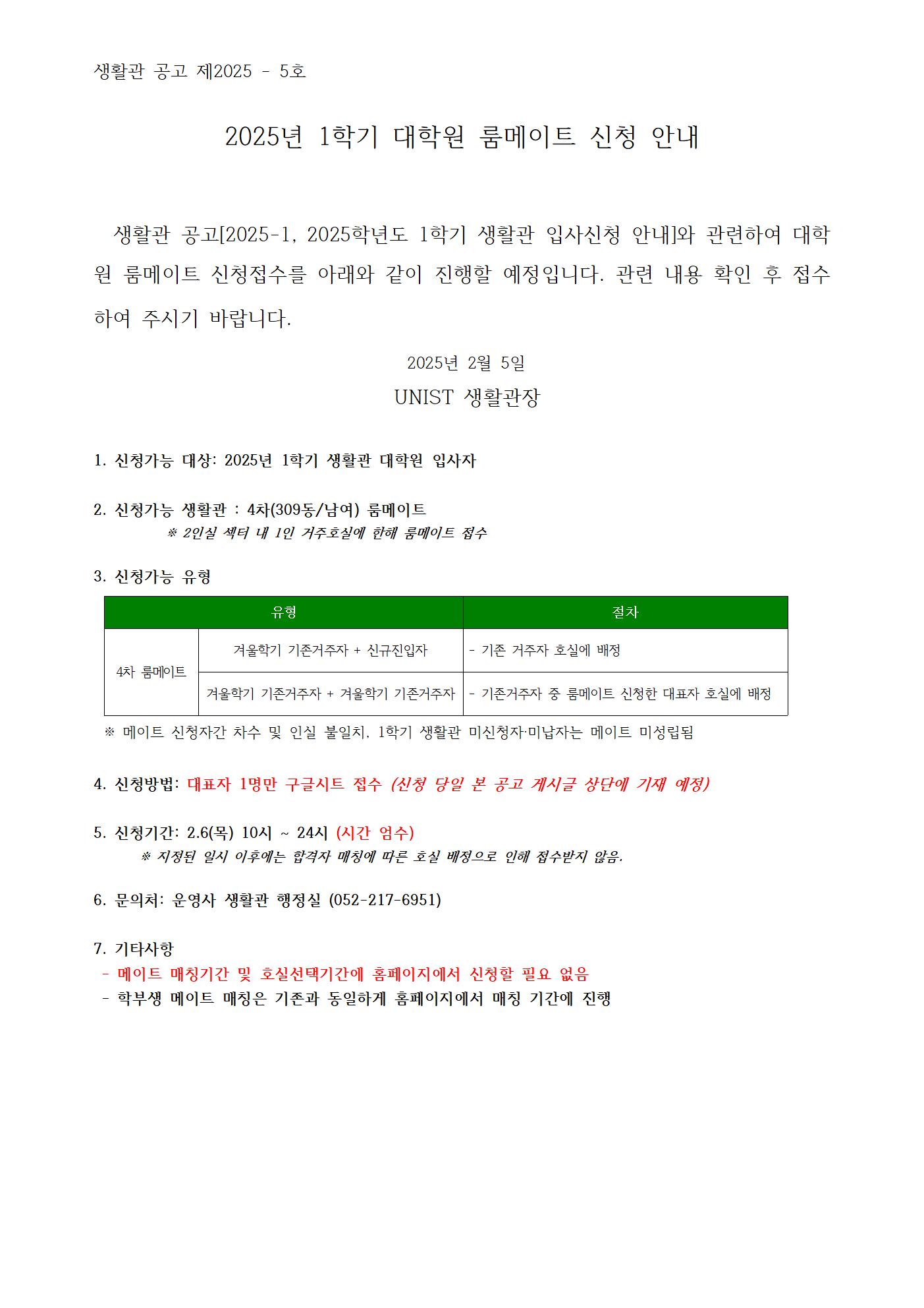 | 984 | [No.2025-05] 2025년 1학기 대학원 룸메이트 신청 안내 (Gra.. | 2025-02-05 | 910 |