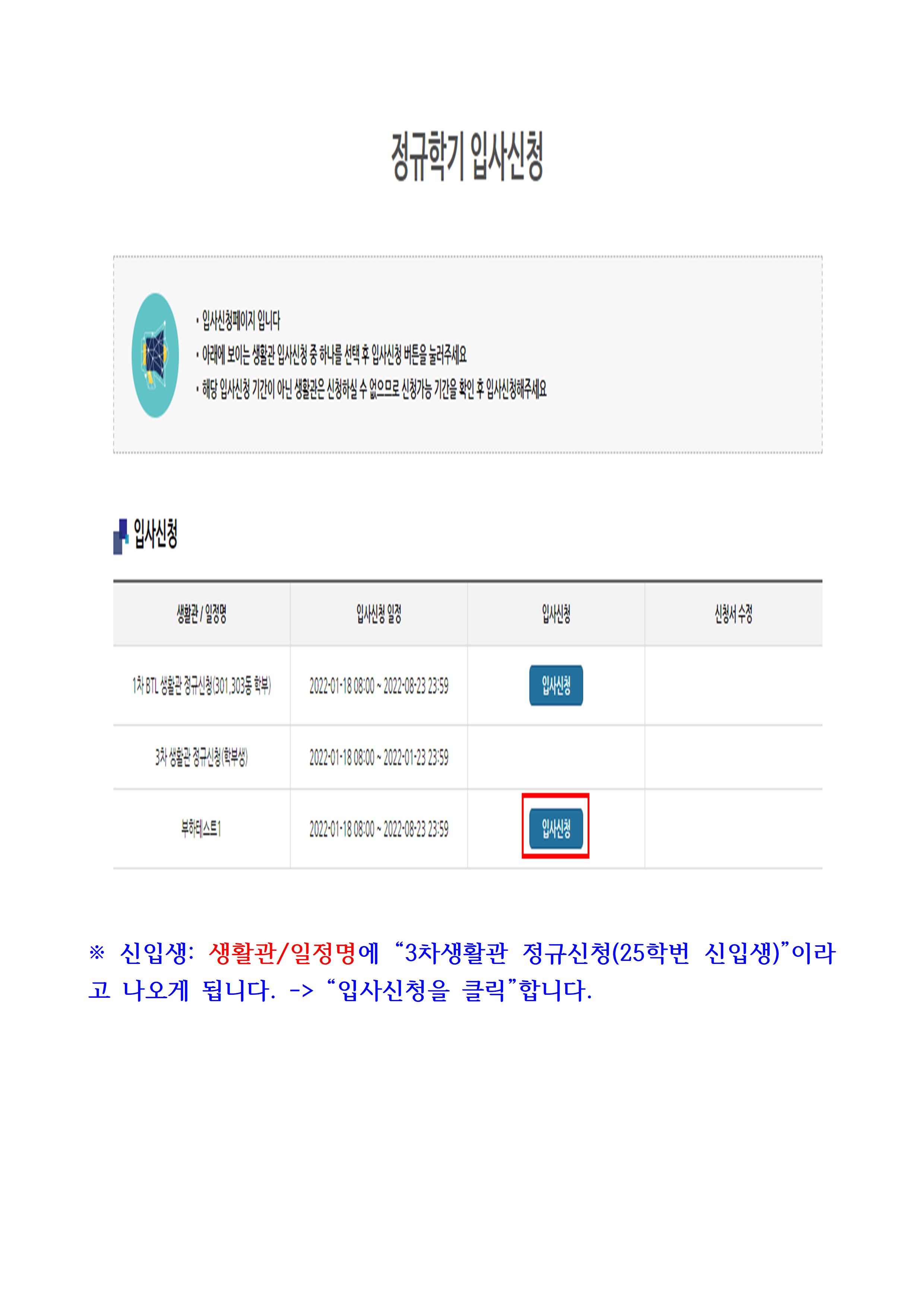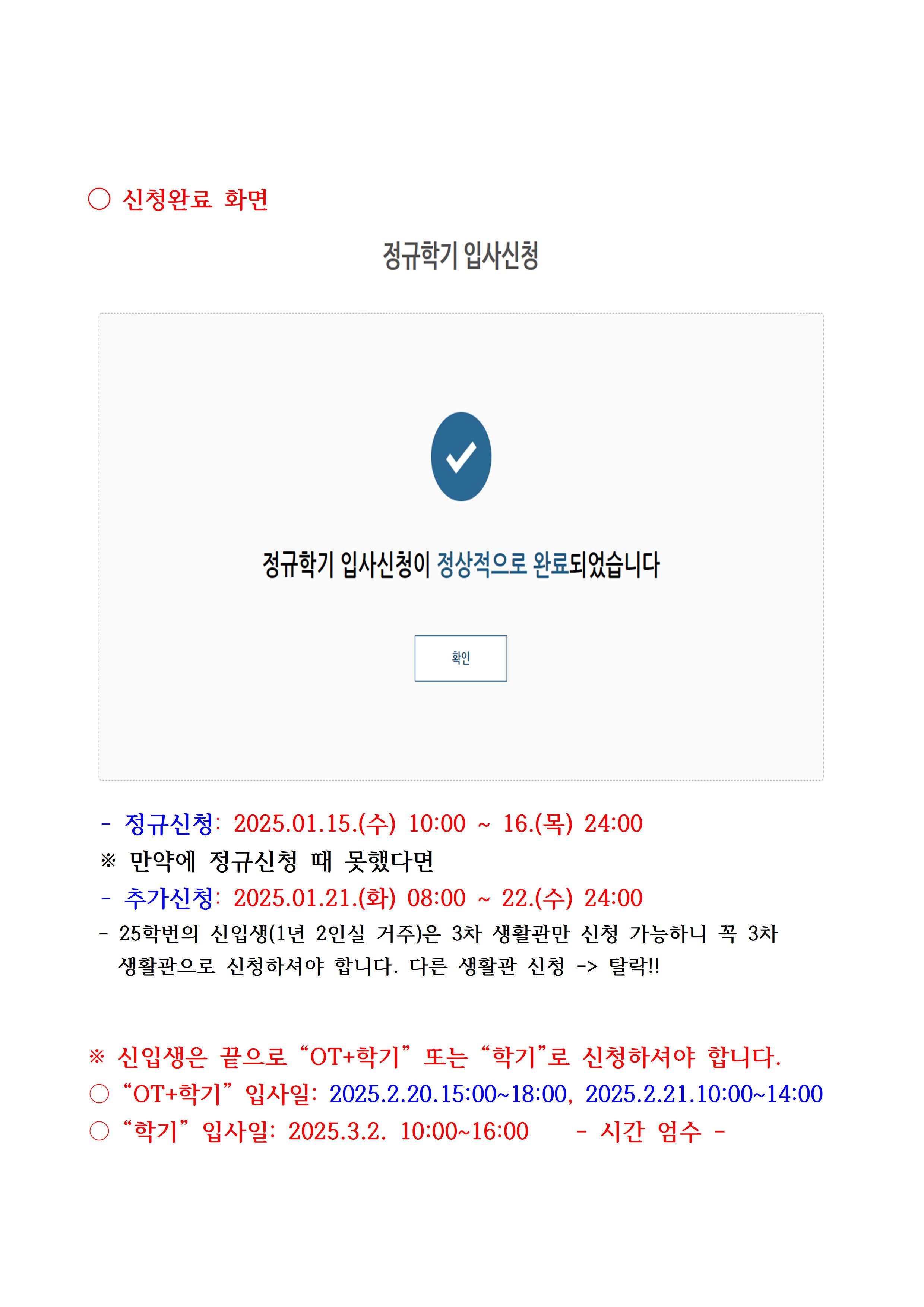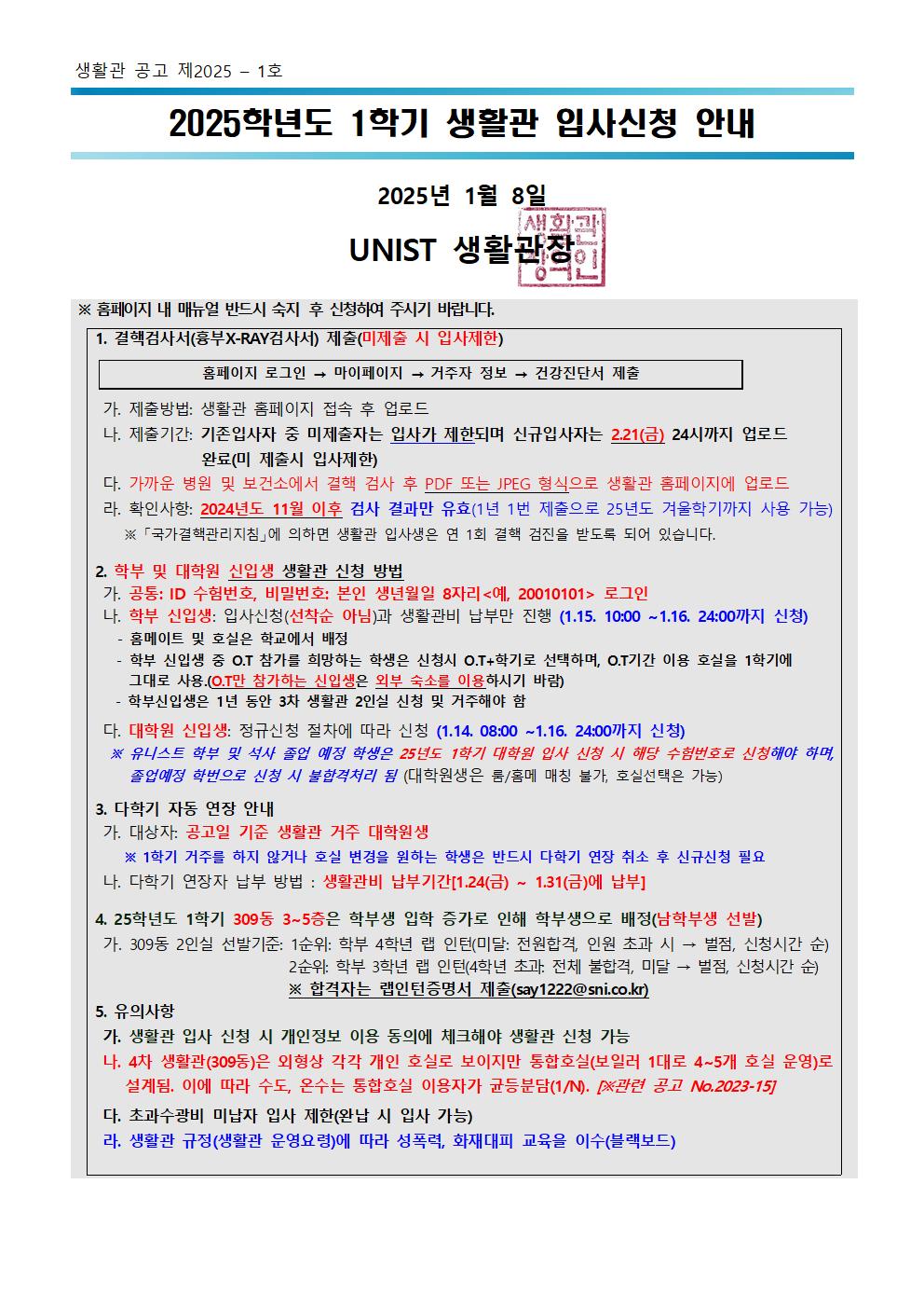 | 974 | [여석수정][No.2025-01] 2025학년도 1학기 생활관 입사신청 .. | 2025-01-08 | 12951 |