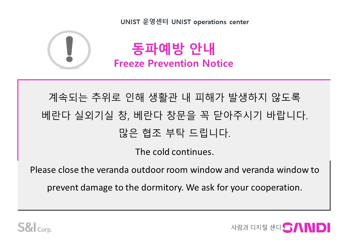 | 975 | 동파예방 안내 (Freeze Prevention Notice) | 2025-01-08 | 493 |