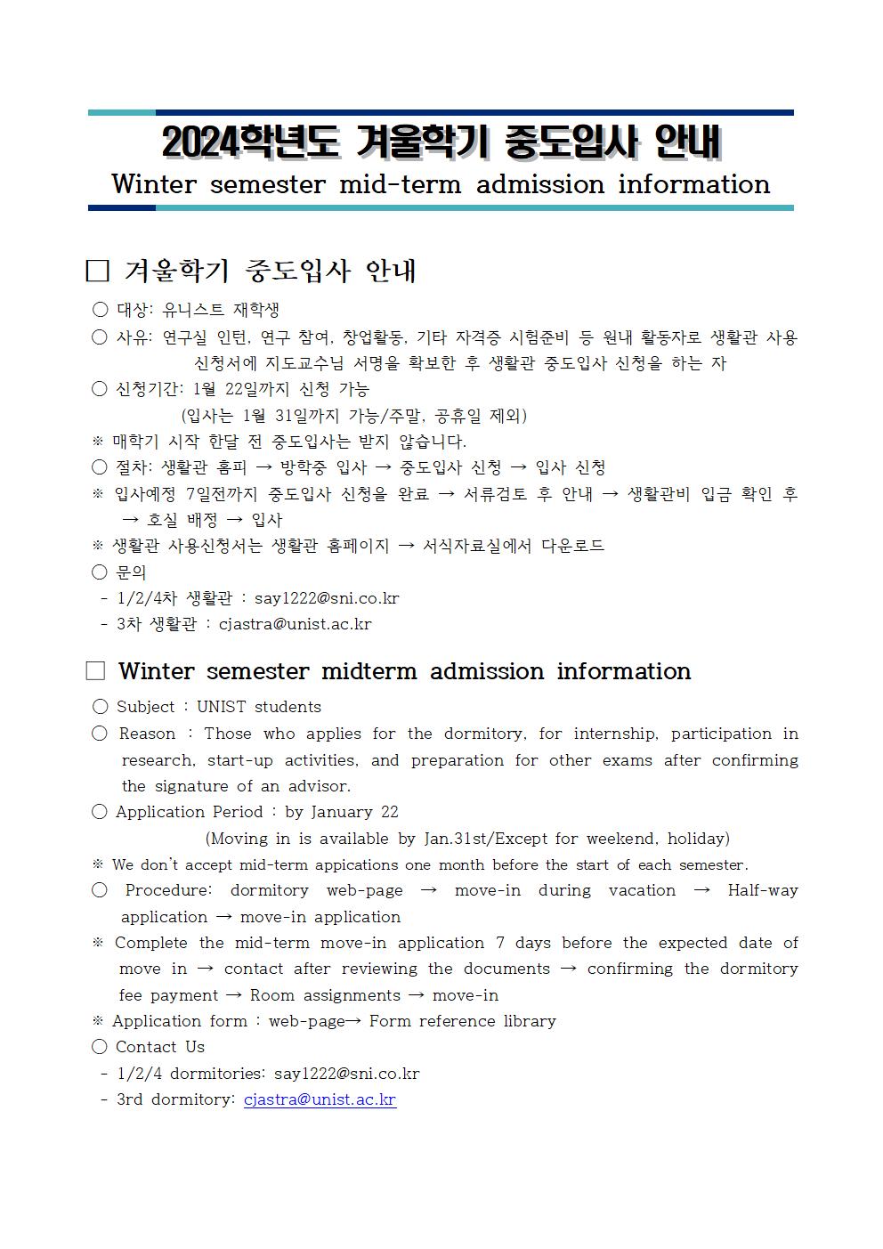 | 977 | 2024학년도 겨울학기 중도입사 안내(Winter semester mid-te.. | 2025-01-14 | 1305 |