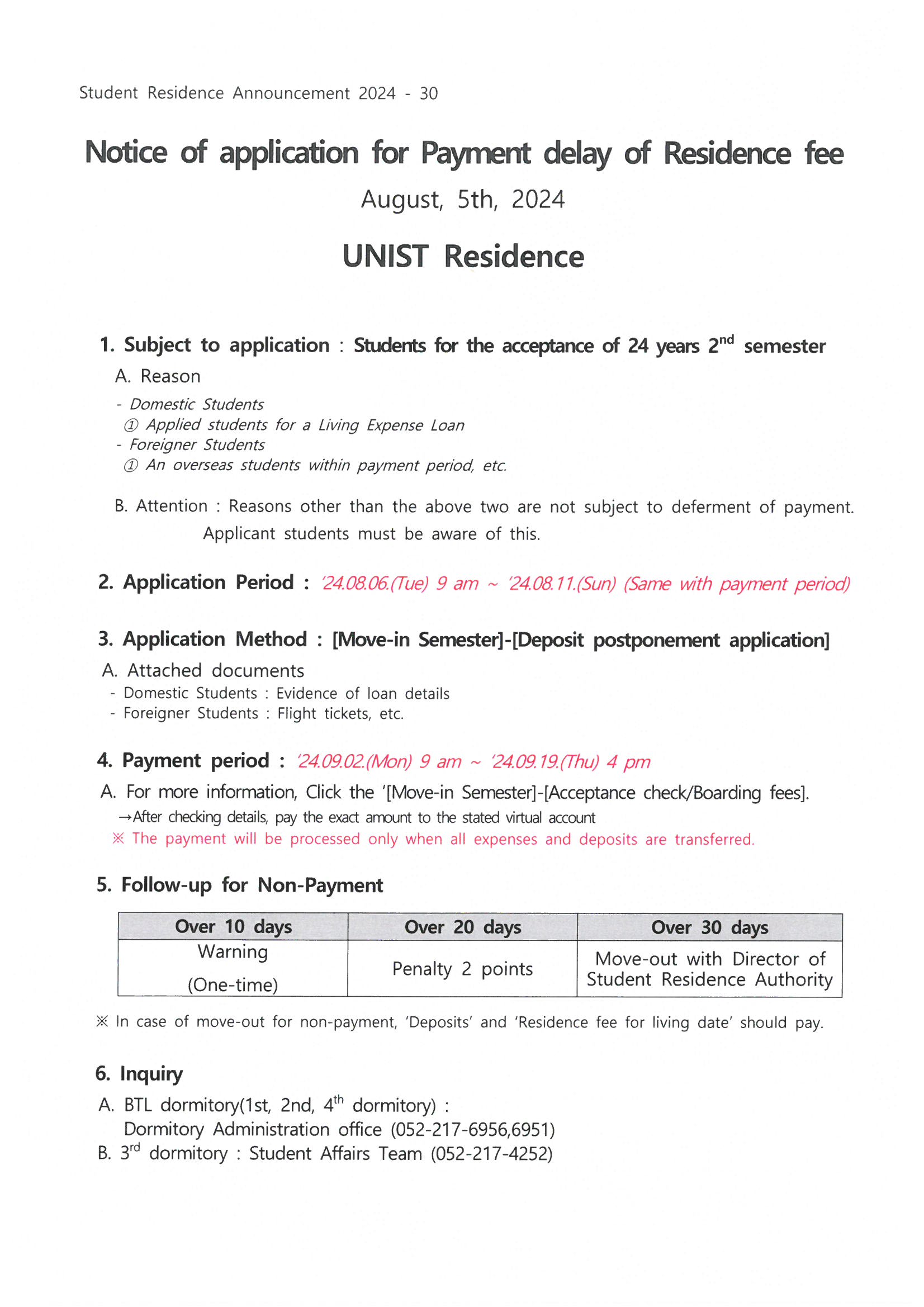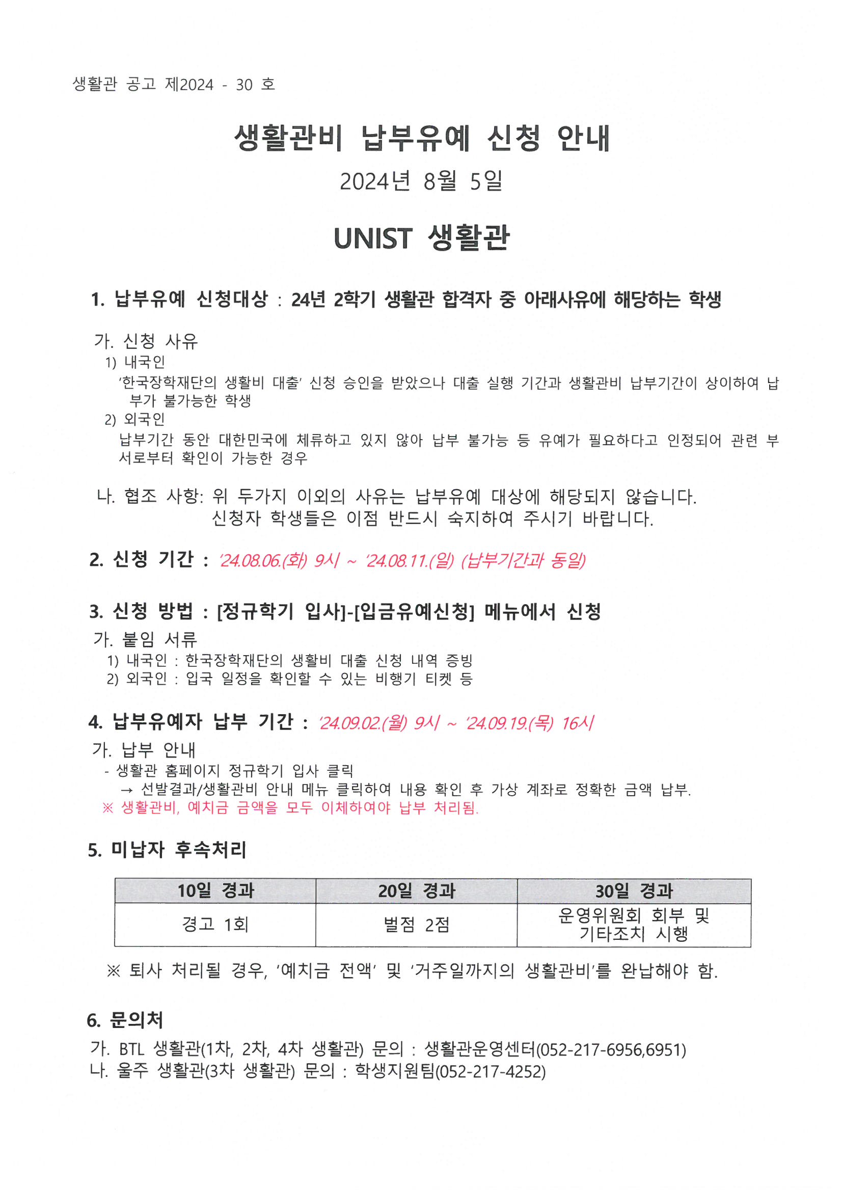 | 932 | [No.2024-30]생활관비 납부유예 신청안내(Notice of applica.. | 2024-08-05 | 1195 |