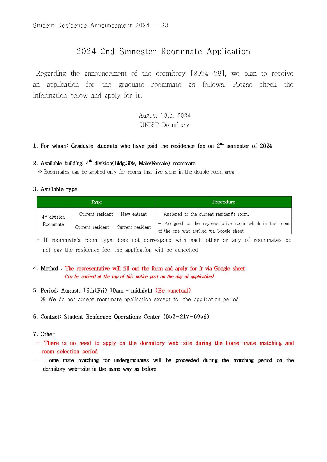 | 936 | [No.2024-33]2024년 2학기 대학원 룸메이트 신청 안내(2024 .. | 2024-08-13 | 786 |