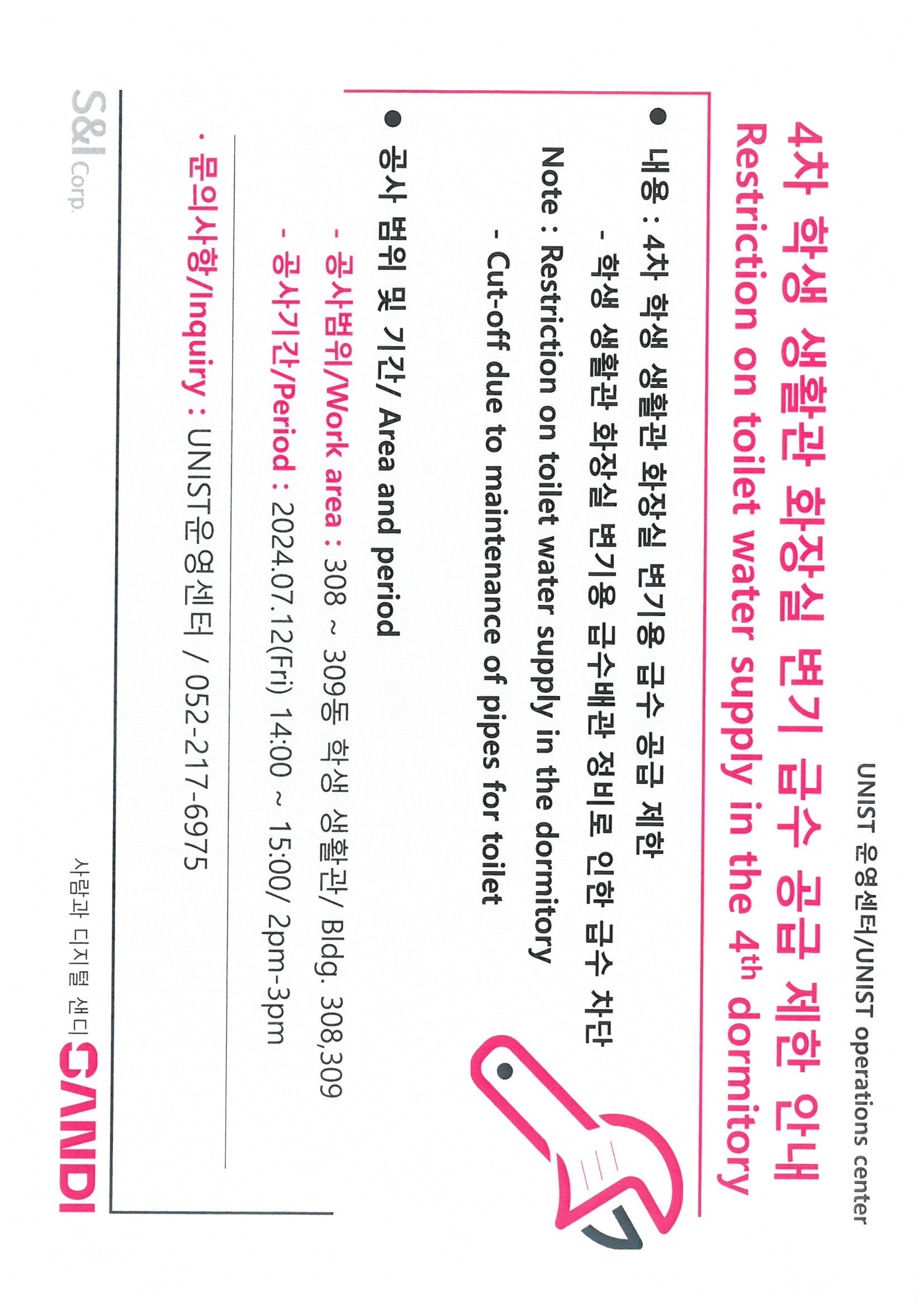 | 924 | 4차 생활관 화장실 변기 급수 공급 제한 안내/ Restriction .. | 2024-07-08 | 920 |