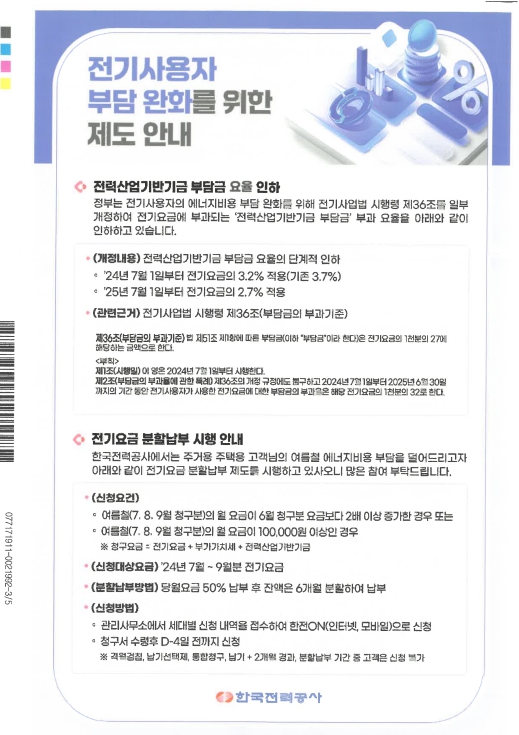 | 925 | 전기사용자 부담 완화를 위한 제도 안내 | 2024-07-16 | 1134 |