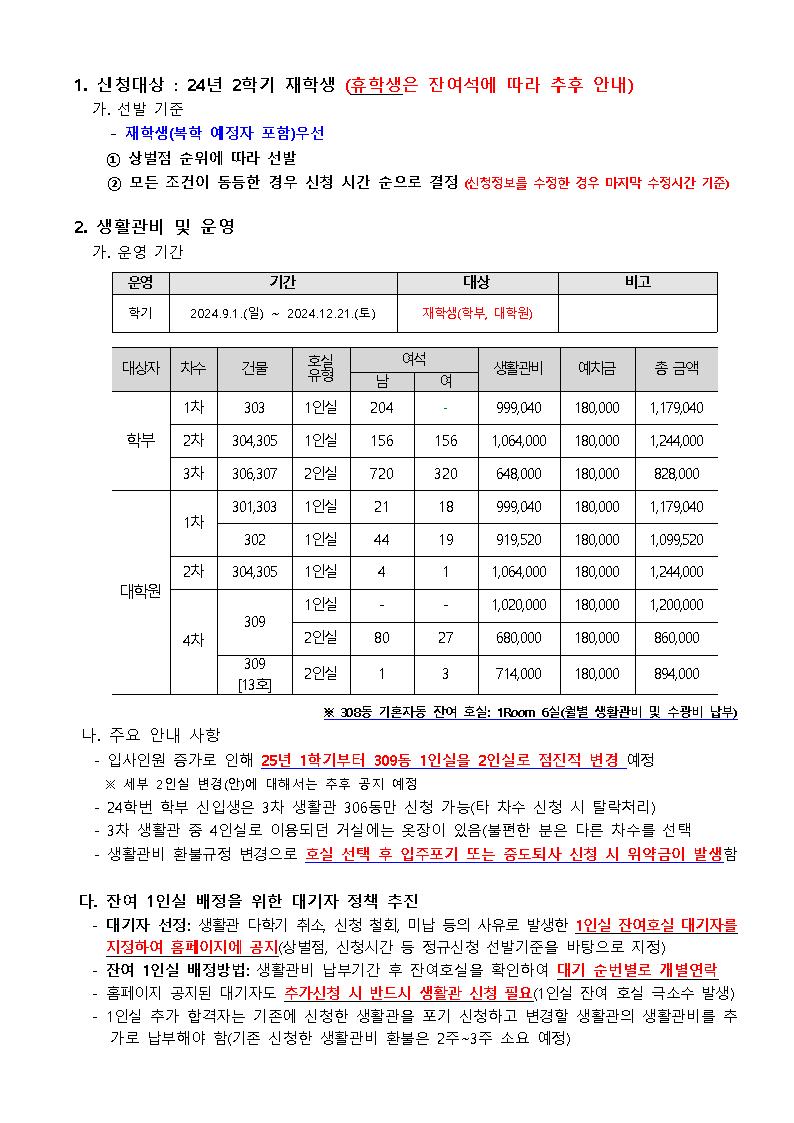 | 926 | [No.2024-28] 2024학년도 2학기 생활관 입사신청 안내(Dormi.. | 2024-07-16 | 12593 |