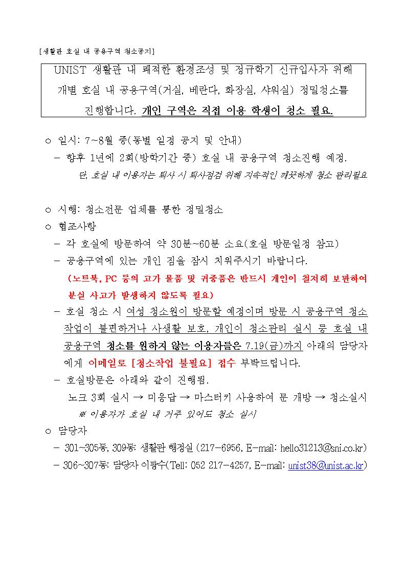 | 927 | 생활관 호실 내 공용구역 청소공지 (Cleaning for common ar.. | 2024-07-17 | 2000 |
