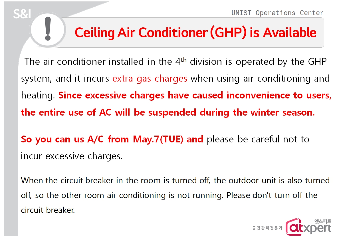 | 901 | 천장 냉난방기[GHP] 하절기 사용 가능 조치 안내(Ceiling Ai.. | 2024-04-29 | 976 |