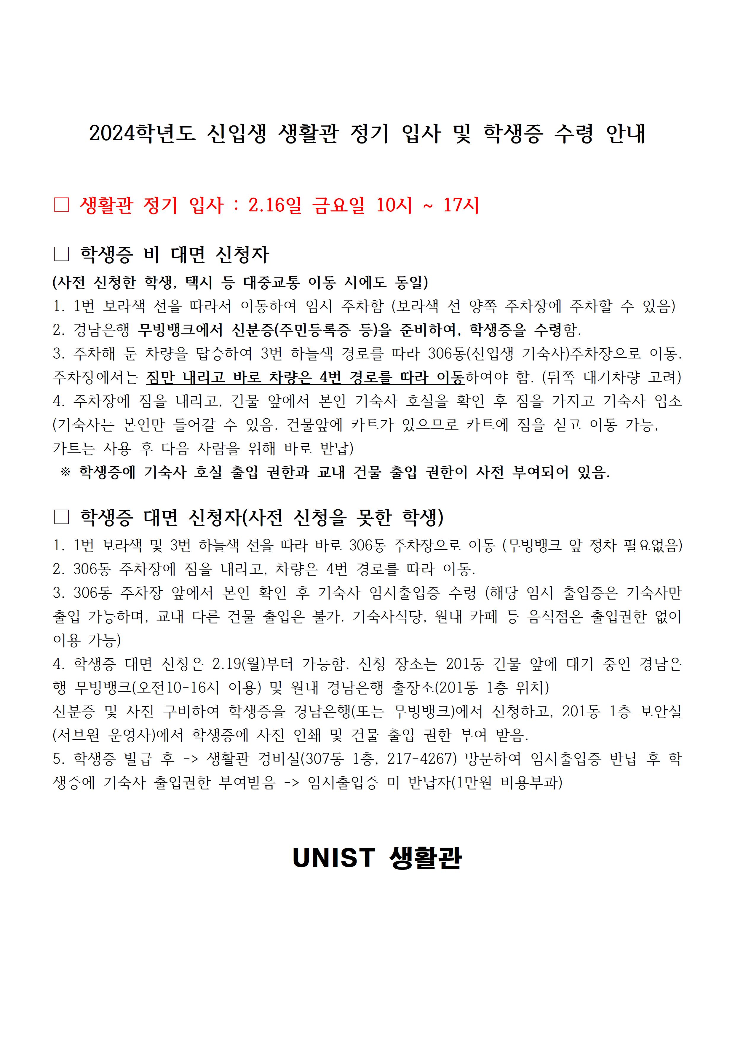 | 878 | 2024학년도 학부 새내기 생활관 입주 안내 | 2024-02-15 | 3327 |