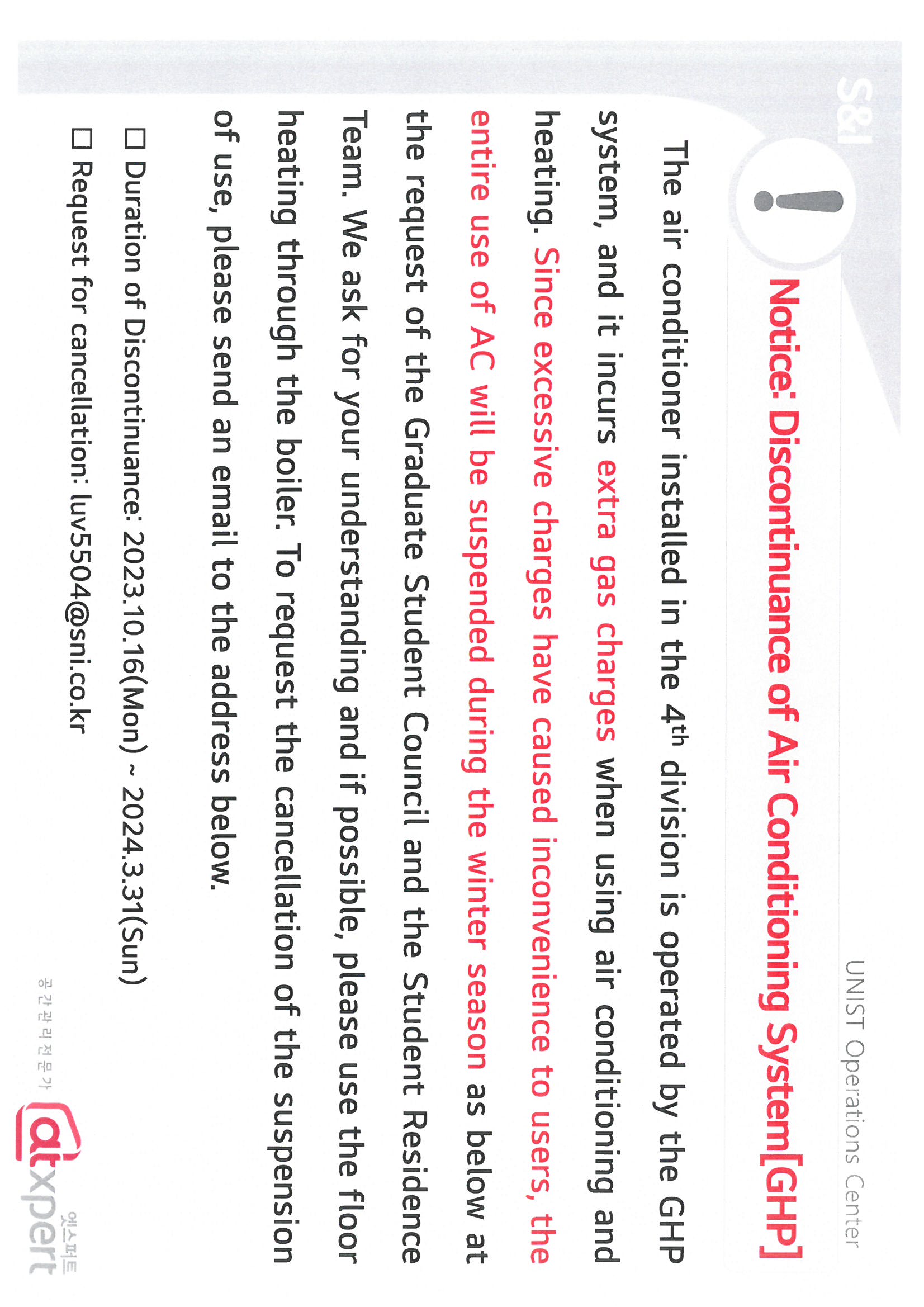 | 824 | 천장 냉난방기(GHP) 동절기 사용차단 조치 안내/Discontinua.. | 2023-10-11 | 1347 |