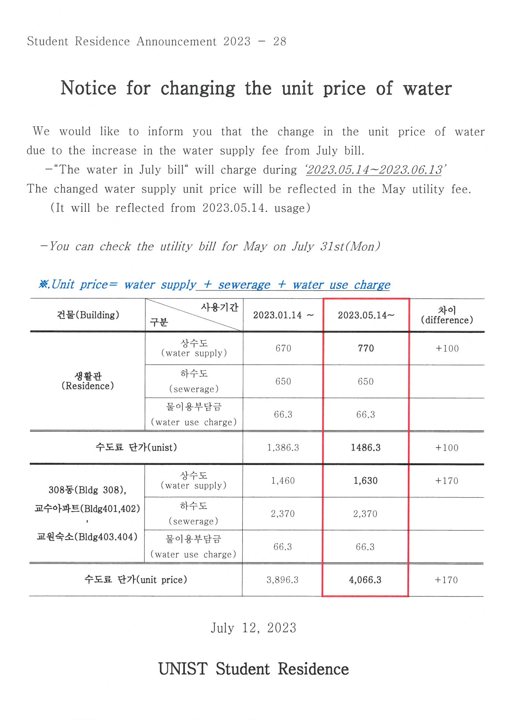 | 790 | [No.2023-28] 생활관 수도료 단가 변경 안내 (Notice for ch.. | 2023-07-12 | 1728 |