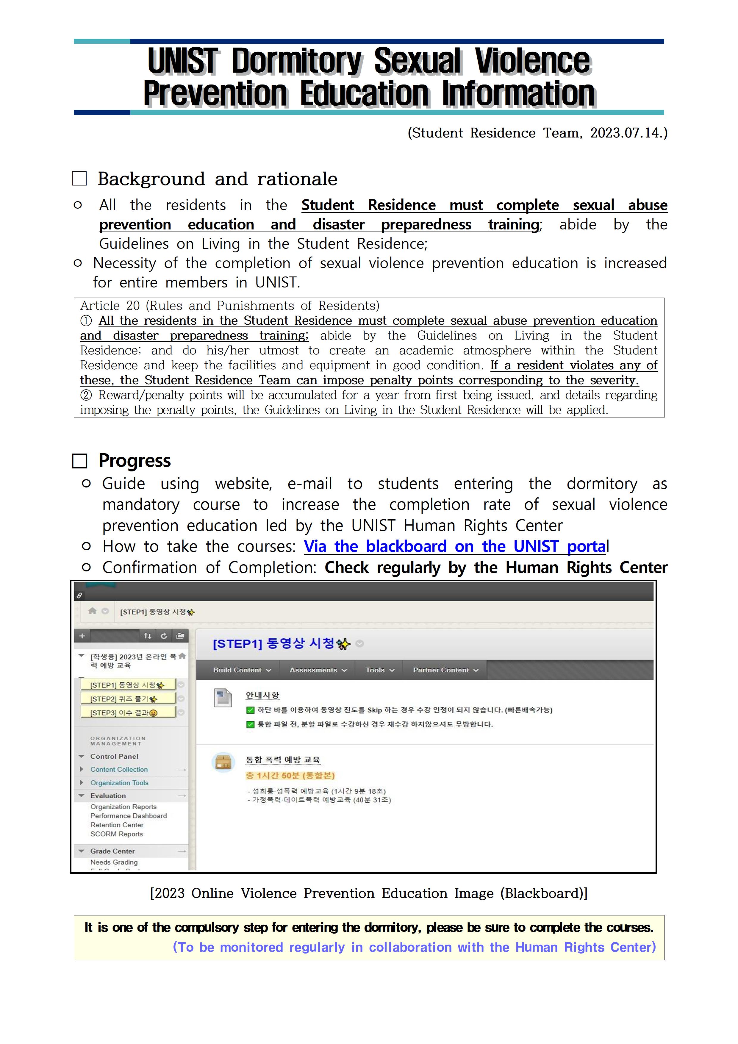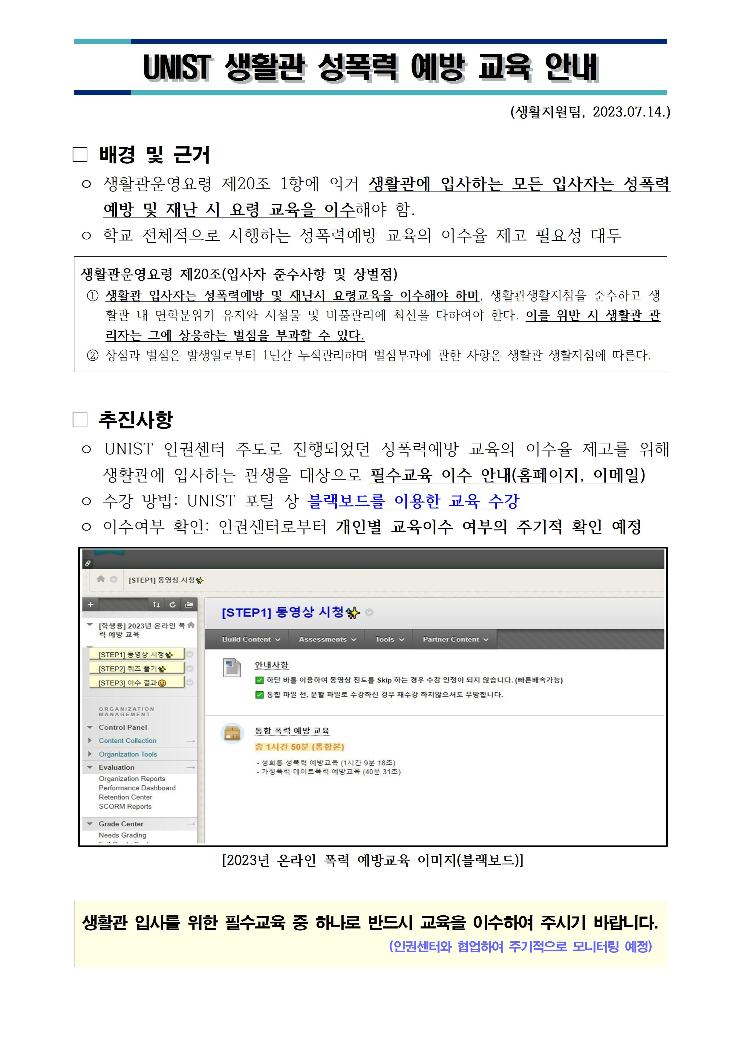 | 791 | [No.2023-29] UNIST 생활관 성폭력 예방 교육 안내(UNIST Do.. | 2023-07-14 | 2545 |