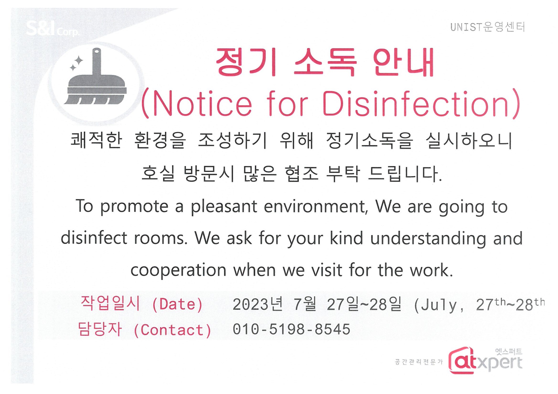 | 792 | 정기 소독 안내 (Notice for Disinfection) | 2023-07-18 | 1258 |