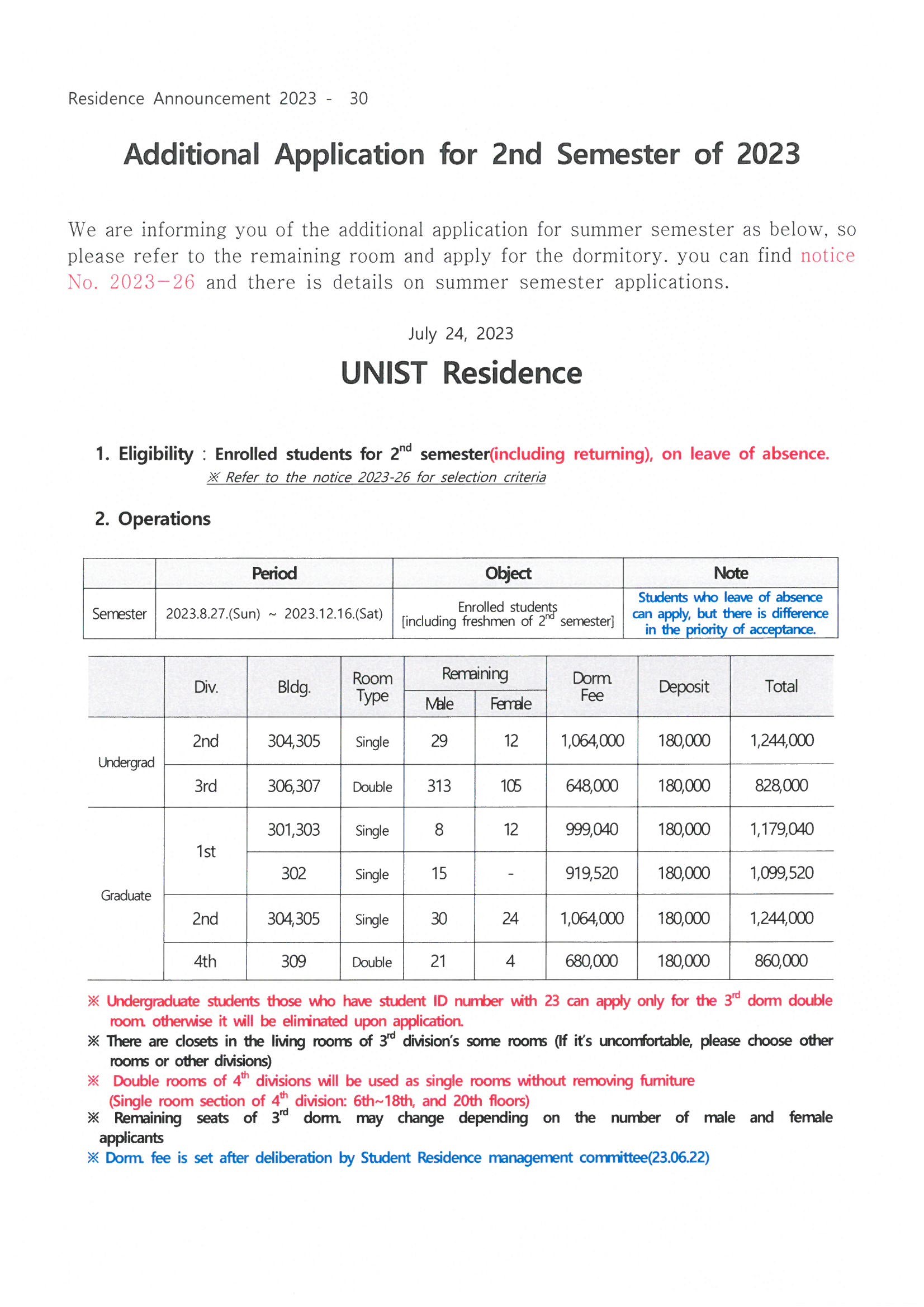 | 793 | [No.2023-30] (여석수정) 2023학년도 생활관 2학기 추가신청.. | 2023-07-24 | 4362 |