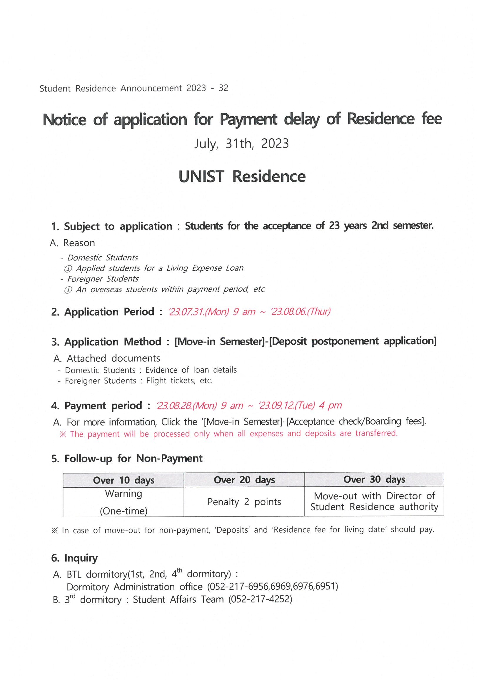 | 798 | [No.2023-32] 생활관비 납부유예 신청 안내(Notice of appli.. | 2023-07-31 | 2130 |