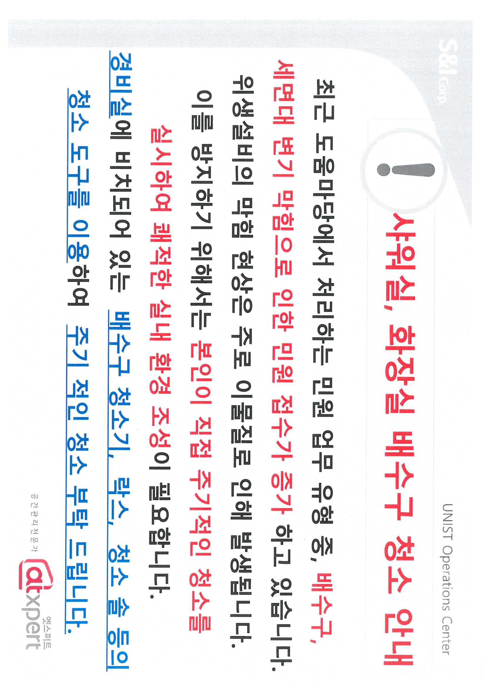 | 772 | 샤워실,화장실 배수구 청소 안내/Notice for cleaning of th.. | 2023-05-03 | 2343 |