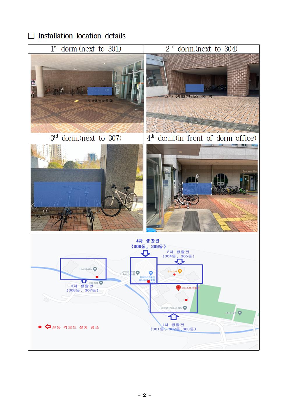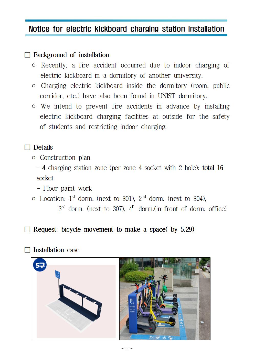 | 774 | 생활관 전동 킥보드 전기 충전소 설치 안내문/Notice for el.. | 2023-05-31 | 1547 | |