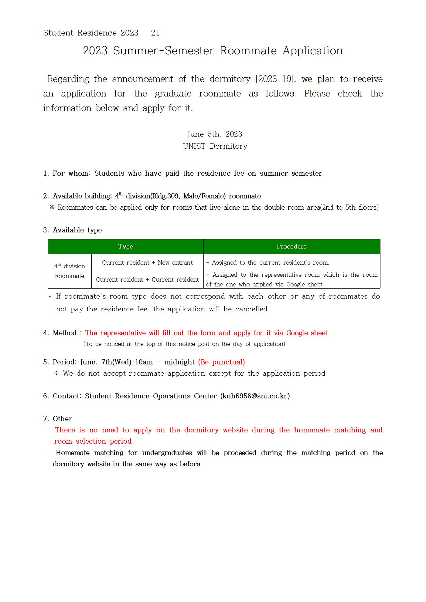 | 776 | [No.2023-21] 2023년 여름학기 대학원 룸메이트 신청 안내(2.. | 2023-06-05 | 1439 |