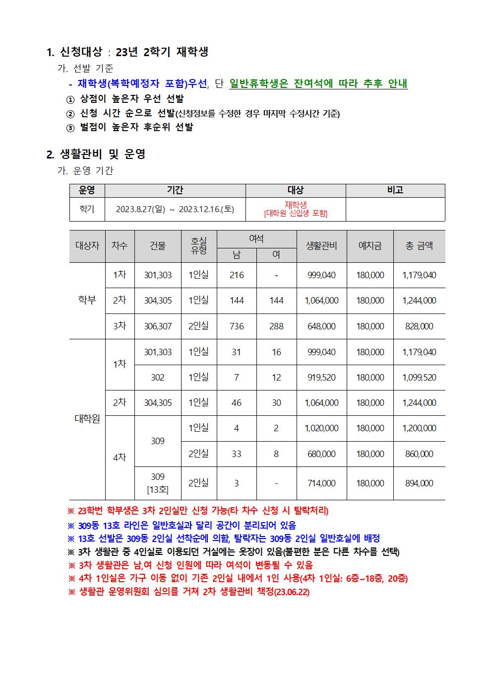 | 789 | [No.2023-26] 2023년도 2학기 생활관 입사신청 안내(Dormito.. | 2023-07-11 | 12531 |