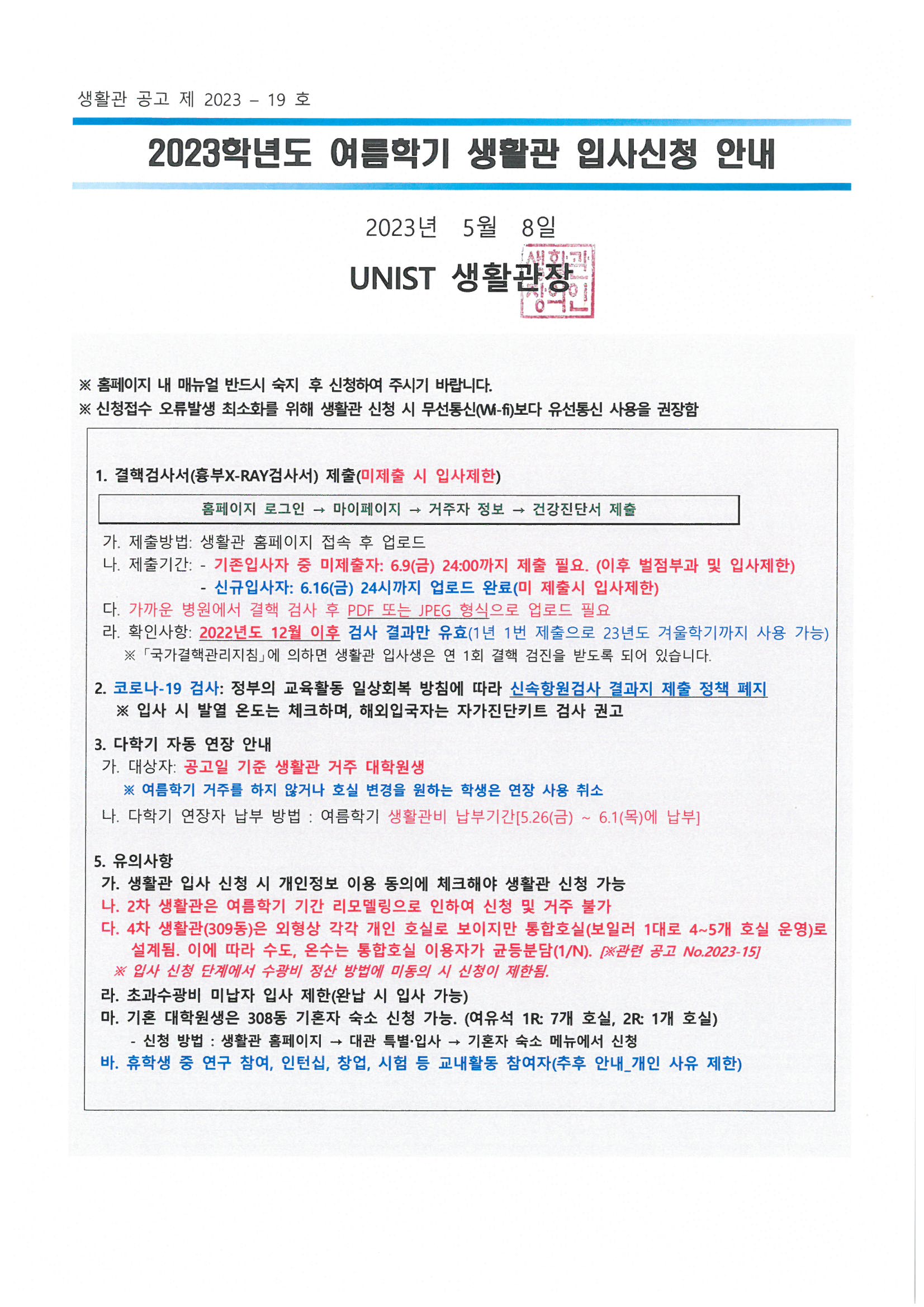 | 765 | [No. 2023-18] 생활관 1학기 정기점검 안내(Dormitory 1st S.. | 2023-04-28 | 3330 |
